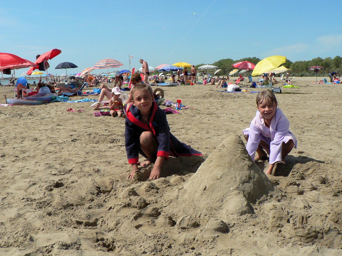 Naše vnoučata Matěj a Zuzka žijí od nás asi 400 km daleko. Moc jsme si jich během roku neužili, proto u nás většinou trávili kus prázdnin. Aby jsme jim léto trošku zpestřili, využili jsme nabídku naší cestovky na pobyt rodičů a prarodičů s dětmi nedaleko italského městečka Caorle v Benátském zálivu u Jaderského moře.
