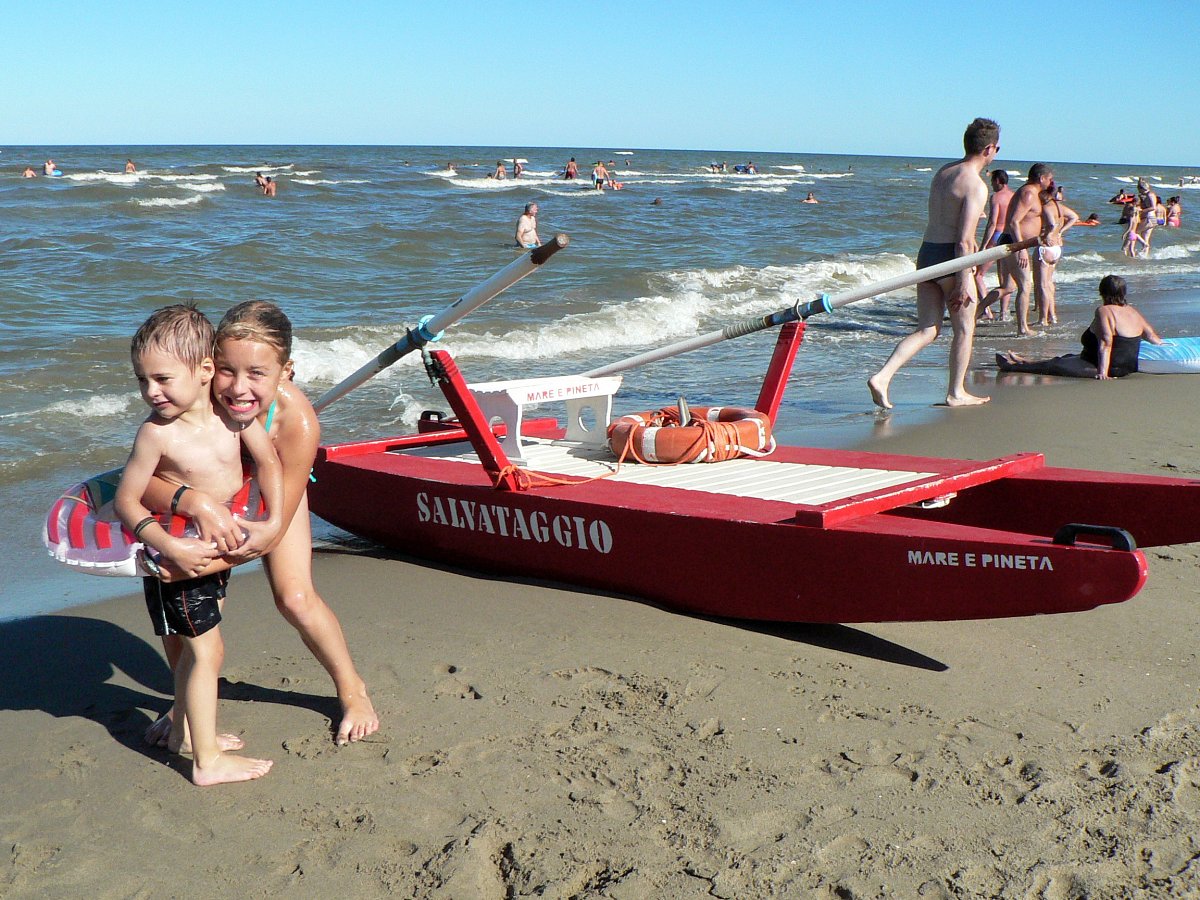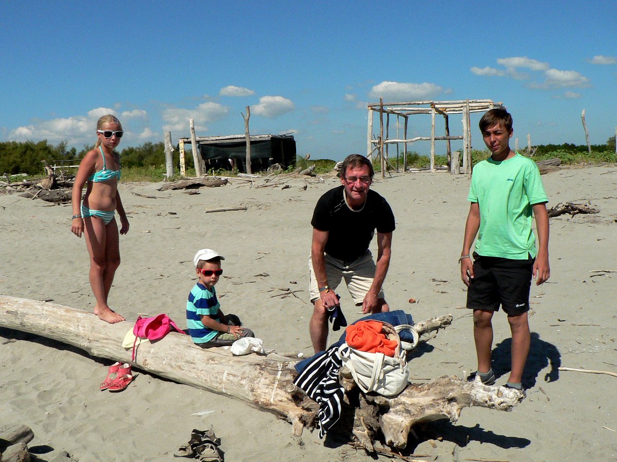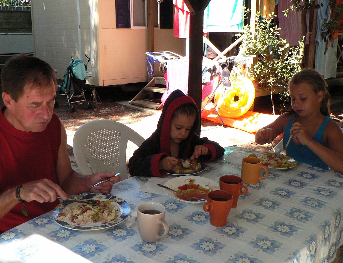 Protože se nám dovolená s vnoučaty u moře v Itálii moc líbila, rozhodli jsme se, že si to ještě jednou zopakujeme. Tentokrát jsme k Zuzce a Matějovi přibrali také malého Andreje. Ubytováni jsme byli v kempu Marre e Pineta u Jaderského moře v Benátském zálivu, jižněji od Caorle. Byla nám přidělena malá chatka se dvěma pokojíky a kuchyňkou, ve které jsem připravovala obědy, když se ostatní vyvalovali u moře. Já osobně chodím k moři jen ráno a nejraději si zaplavu před večerem, kdy už je na pláži jen pár lidí.