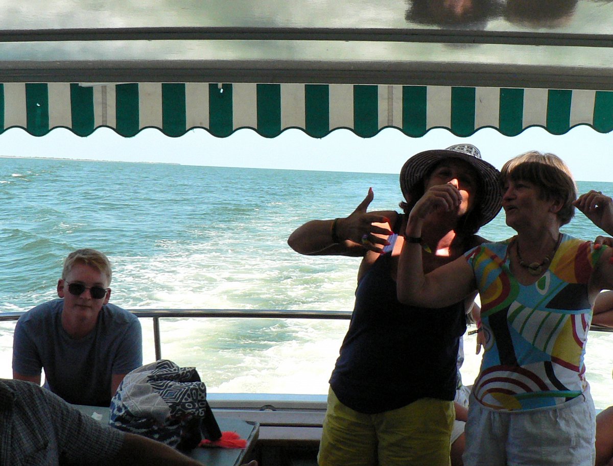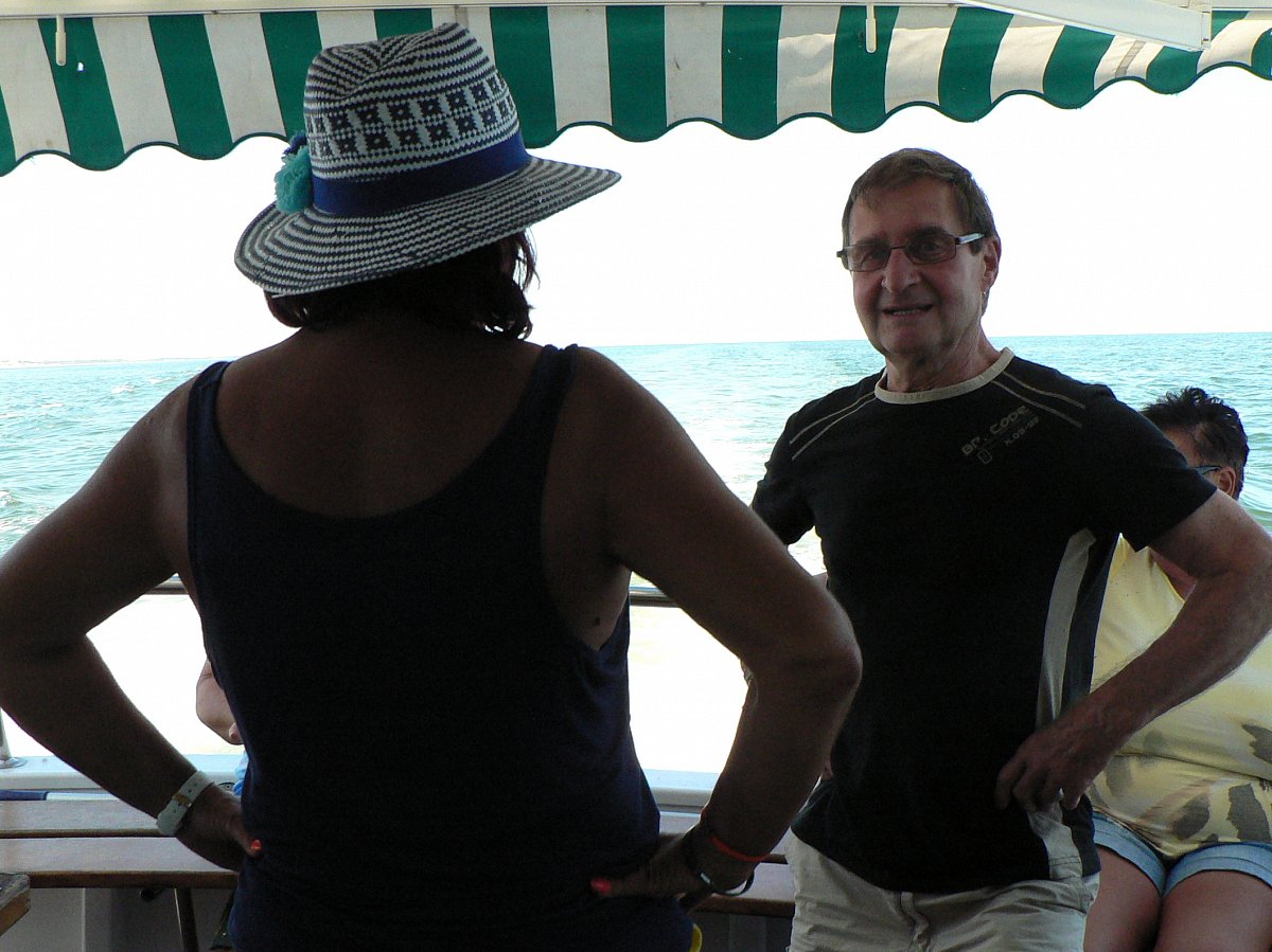 Jako na každé dovolené u moře využili jsme nabídky zájezdů po okolí. Jeden večer jsme si vyjeli mikrobusem na prohlídku městečka Comacchio, kterému se říká Malé Benátky. Největším zážitkem byl ale výlet na ostrov, jehož jméno jsem zapomněla. Vím jen, že jsme pluli okolo Ostrova lásky. Vzpomínka na romantický výlet je ale nezapomenutelná. Bylo krásné počasí, naši kamarádi a naše vnoučata si našli místo na horní palubě, my s manželem jsem usedli raději do stínu v podpalubí. Plavbu nám zpříjemňovala romantická hudba, poletující rackové a výborné občerstvení. Začalo to sladkým přípitkem a dobrým italským vínem. Po zakotvení na ostrově a osvěžující koupeli se podával oběd - grilovaná ryba s pečivem. Vína bylo dostatek i sladký likér ještě zbyl. V podpalubí se to začalo při zpáteční cestě pěkně "rozjíždět". Prostě víno, ženy, zpěv. Došlo i na tanec. Ještě, že se nám kamarádi postarali o naše svěřence. Někteří účastníci zájezdu měli dokonce i mořskou nemoc. Já jsem ji, nevím proč, chytila až v naší chatce, celý večer jsem proležela s mokrým ručníkem na hlavě.