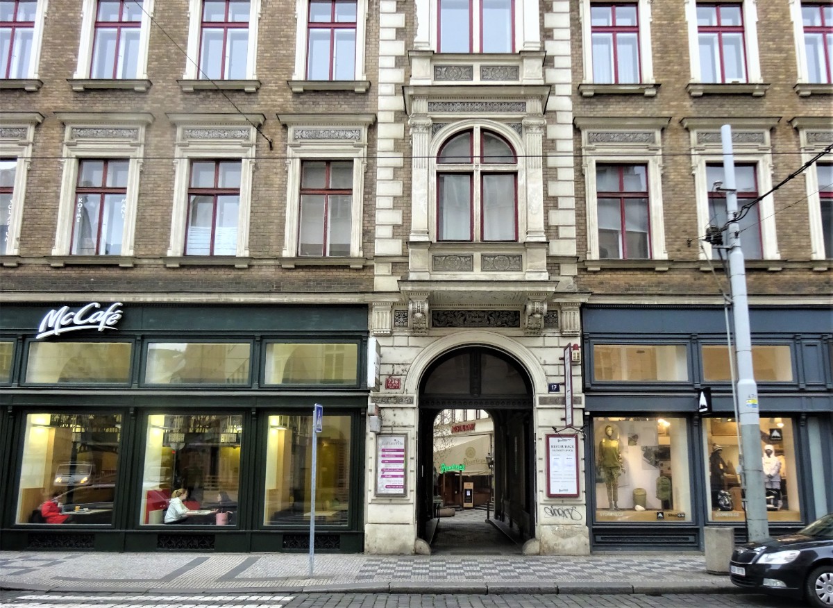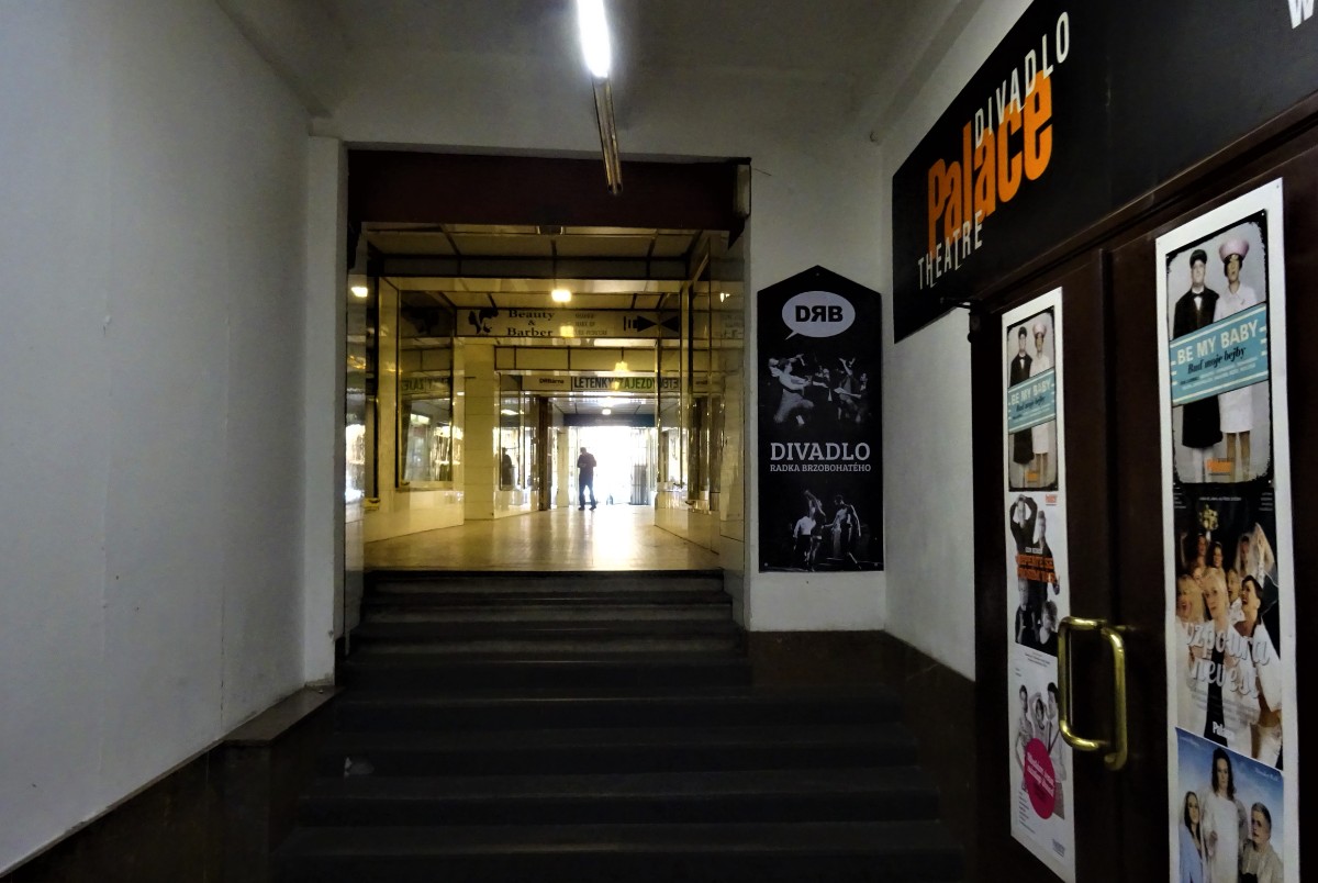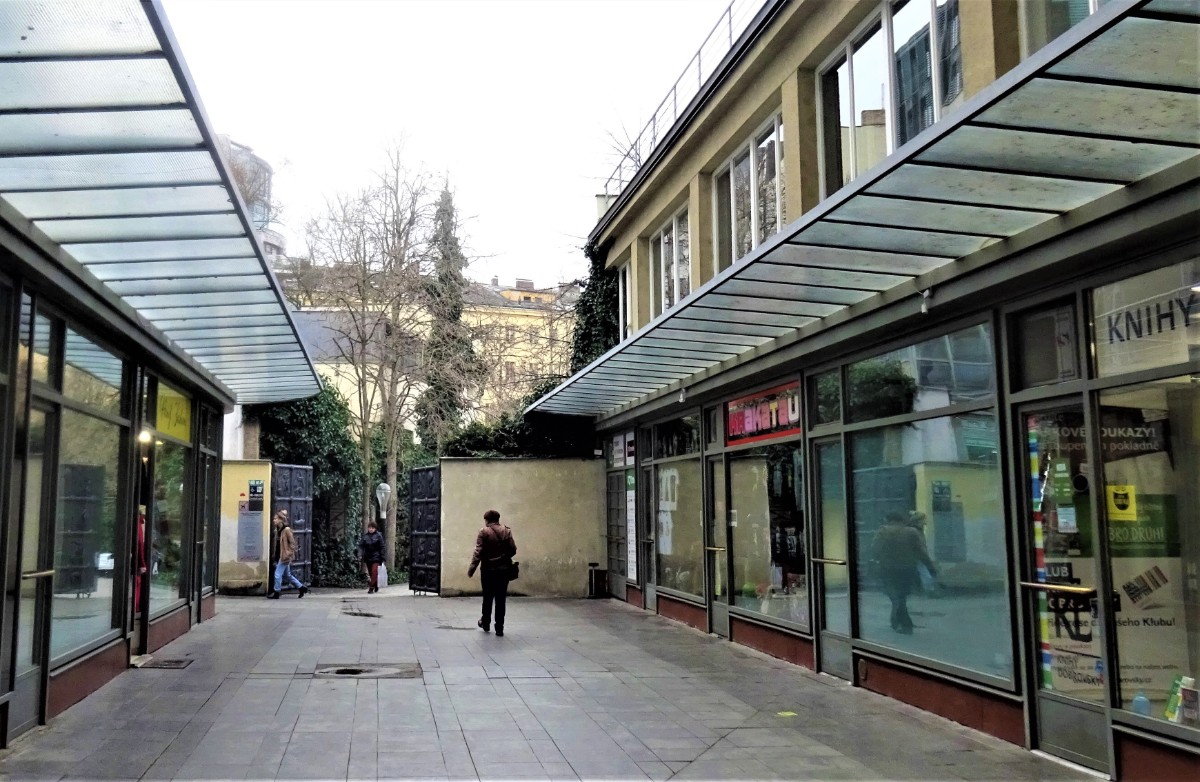 Z pasáže vede průchod do pasáže Alfa v paláci U Stýblů. Byl postaven ve funkcionalistickém stylu v letech 1928–1929. Palác je chráněn jako kulturní památka. Od roku 1959 zde působilo oblíbené Divadlo Semafor. Alfa už není, co bývala. Místo někdejšího kina jsem našla zavřenou směnárnu.