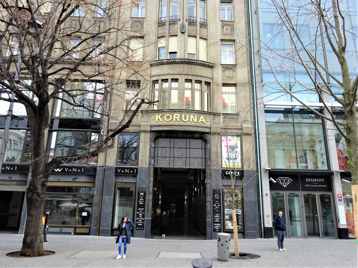 Palác Koruna je význačná secesní budova. Jmenuje se podle zakončení věžovitého vrcholu ve tvaru koruny. Z pasáže, spojující dolní část Václavského náměstí a ulici Na Příkopě, mi bylo smutno. Jako mnozí Pražané i návštěvníci hlavního města si pamatuji skvělý automat Koruna – měl neopakovatelné kouzlo. V roce 1996 byl palác rekonstruován, automat zrušen. Nyní je pasáž opuštěná, bezvýrazná. Nachází se v ní jen několik obchůdků. Zmizel i největší pražský obchod s hudbou Bontonland Megastore.