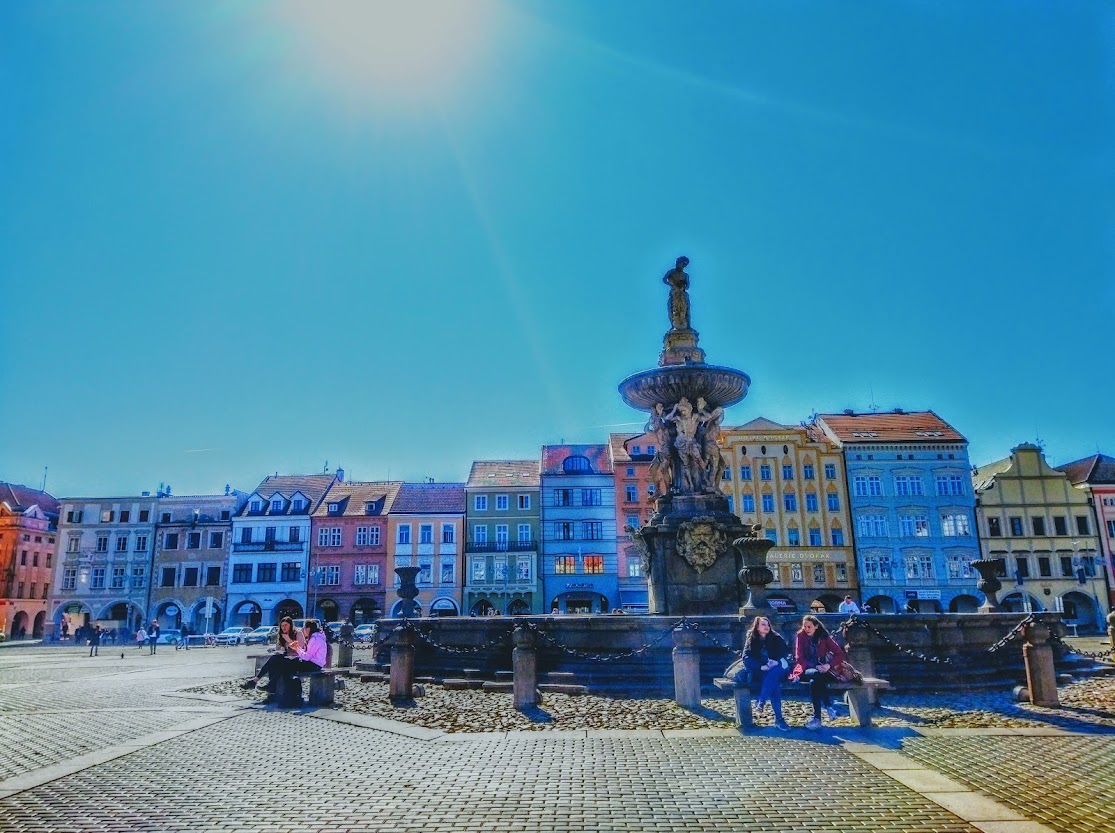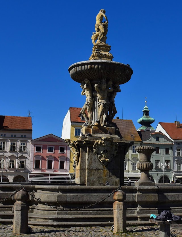 Toto město na řece Malši jsme chtěli už mnohokrát navštívit, ale vždy nám to vycházelo tak nějak okolo. Nyní při cestě do Třeboně už jsme to "dali" a konečně jsme Samsonovu kašnu viděli zblízka. Obešli jsme náměstí a vydali se k řece po Krumlovském mostě na Zátkovo nábřeží. Za mostem jsme uslyšeli řev havranů. Podívali jsme se směrem ke koruná stromů a nestačili se divit. Větve byly posety hnízdy. Prošli jsme kolem Železné panny a šli dál k Sokolskému ostrovu.