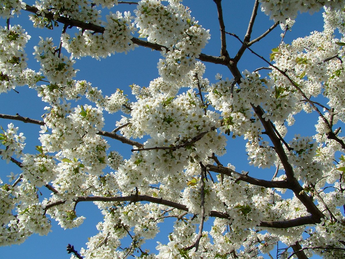 Cítíš tu vůni? To dělá jaro, poslouchej, jsme pod třešní, v koruně to hučí. To, co se sype, není snížek, i když jsou záhony bílé. Odkvetla pozdní meruňka a teď odkvétají švestky, takže se bílé lístky snášejí k zemi.