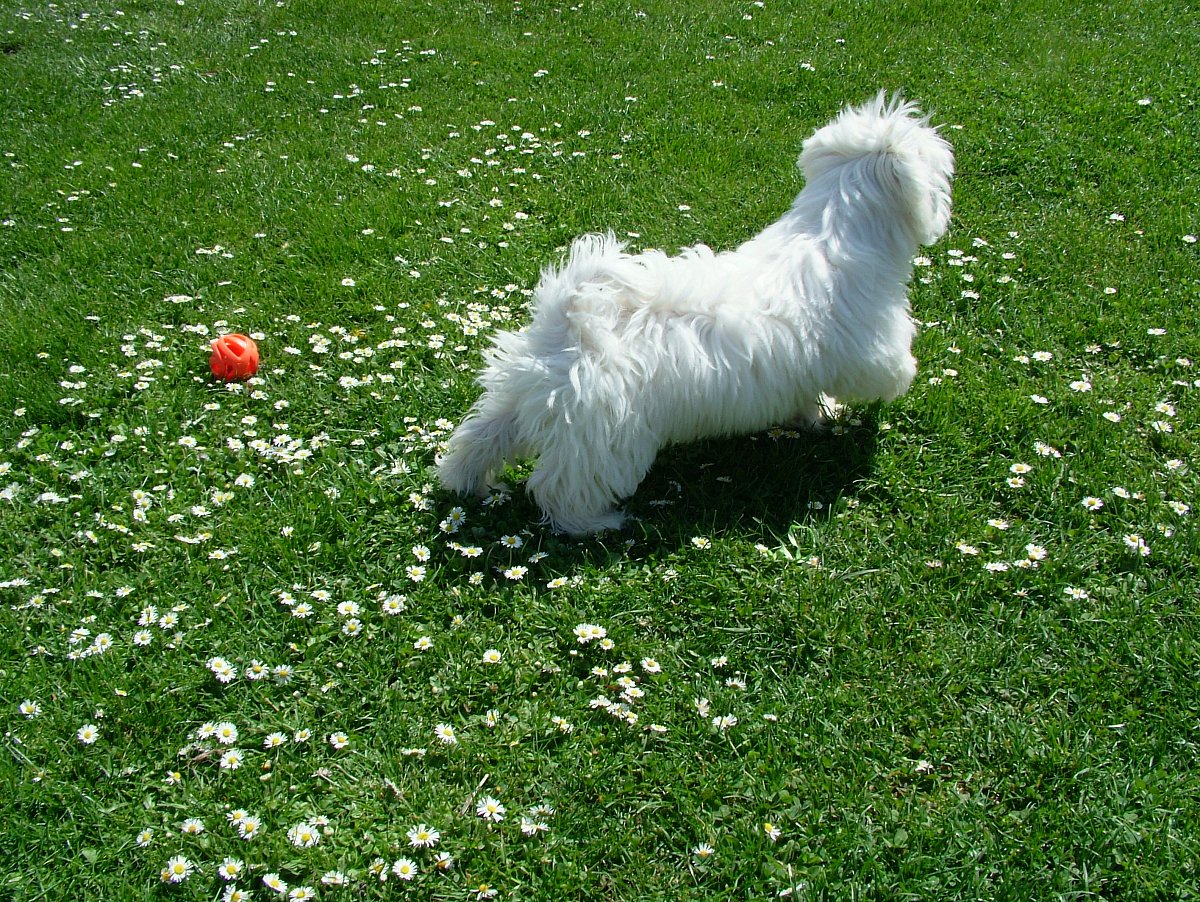 A teď, Bety, míček, přines, hodná Bety. Myslím, že hrát si s ním na paloučku mezi sedmikráskami bude úplně to nejlepší, že ano?