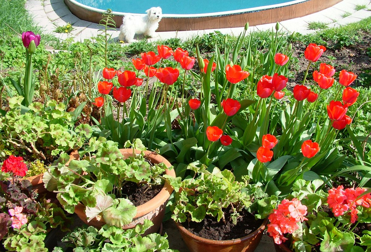 Čím tě zlákala skalka, že si tam leháš? Voní ti levandule nebo se ti líbí barevné kytičky? A jé, něco křuplo, sedla sis na tulipán, v barvínku klidně zůstaň, ten tě unese. Pojď a pomáhej mi trochu, vyklepeš semínka z loňských afrikánů, můžeš odnášet zaschlé, vyřazené muškáty. No vidíš, jaká jsi zahradnice.