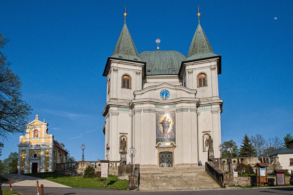 Svatý Hostýn - bazilika Nanebevzetí Panny Marie je nejvýše položenou sakrální stavbou s trvalou duchovní správou na Moravě (718 m.n.m. ). Tuto stavbu financoval tehdejší majitel panství Jan z Rottalu a synové jeho bratra. Dokončena byla v roce 1747, do současné podoby byla zrekonstruována v polovině 19. století. Během našeho pobytu jsme bydleli v poutním domě na Svatém Hostýně, prakticky přímo vedle baziliky.