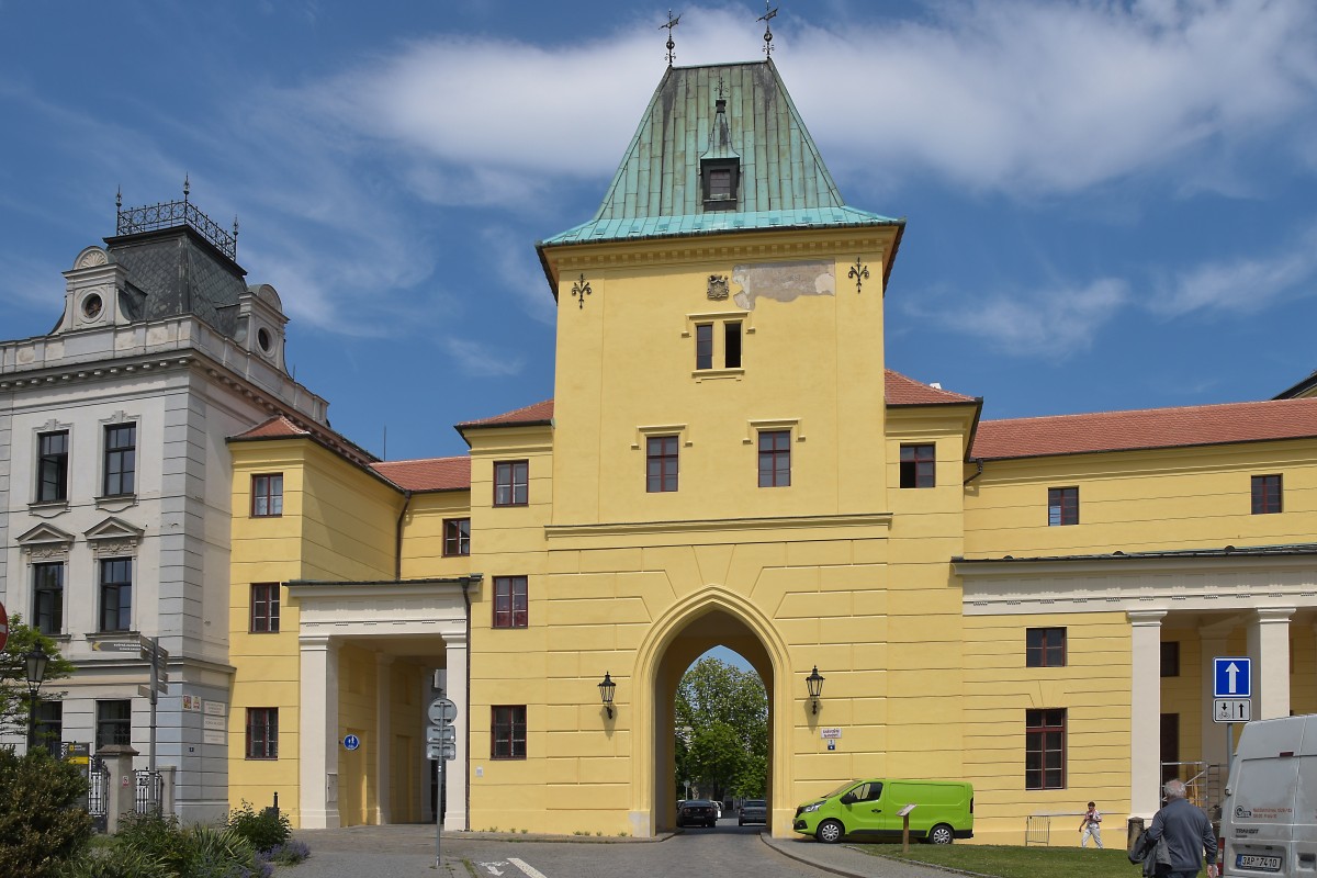 Kroměříž - zámecká věž s vyhlídkovým ochozem - pohled z náměstí