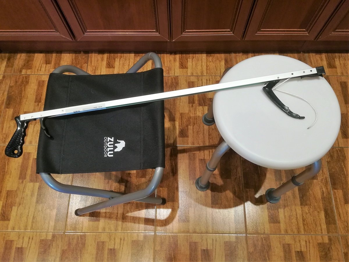 Objednala jsem si tedy na internetu lehkou skládací rybářskou stoličku, sednu si, když dávám prádlo do pračky, čistím kočičí wc nebo něco hledám dole ve skříni. Další omyvatelnou stoličku s protiskluzem do vany (protiskluzovu podložku už mám) kvůli mytí vlasů. A také „prodlouženou ruku“ - je to takové chňapadlo, když mi něco upadne. Tyto věci se budou hodit i v budoucnu. Nákupy jsem si nechala přivézt z on-line obchodů.