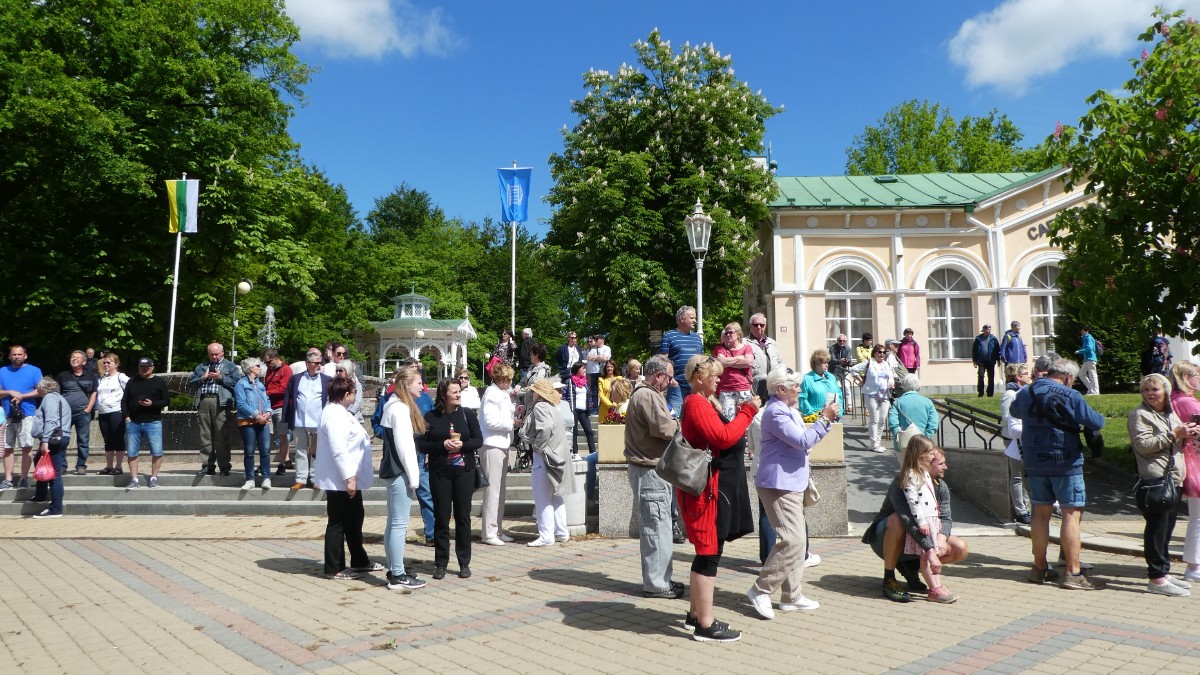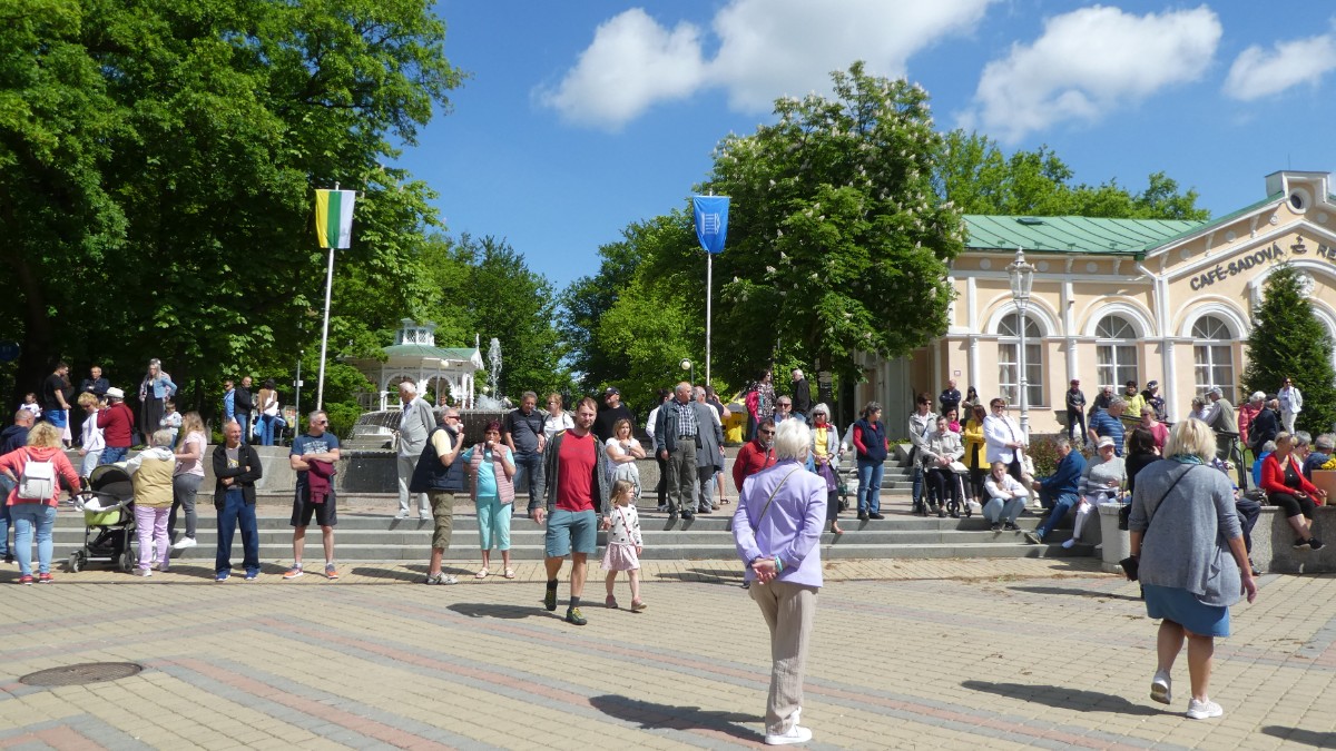 Konečně jsme se po dvou letech dočkali. Lázeňská sezóna v Františkových Lázních byla zahájena dne 21. května. Sobota se probudila do nádherného slunečního dne. Modř nad hlavou a zlaté slunce, stromy, květiny, lidé, vše zářilo jarem a spokojeností.