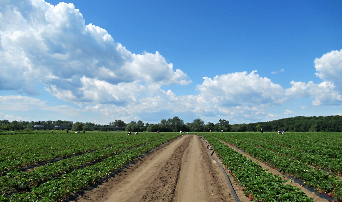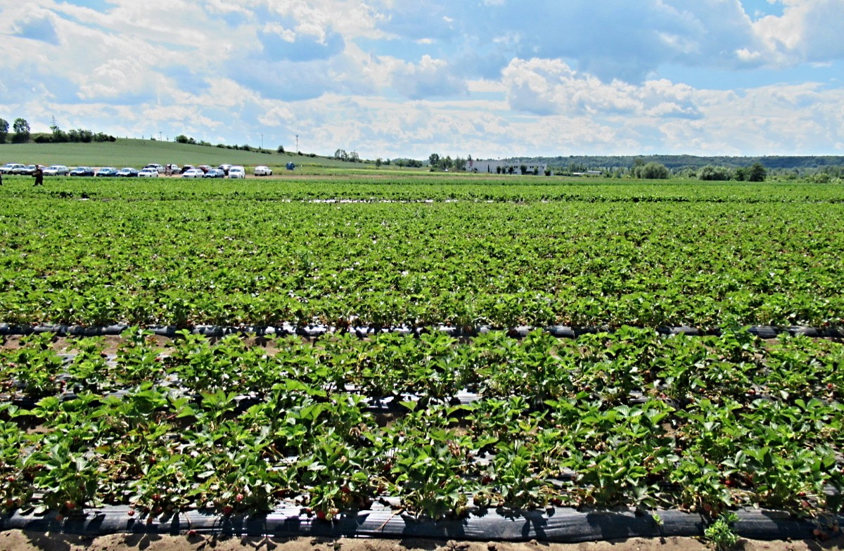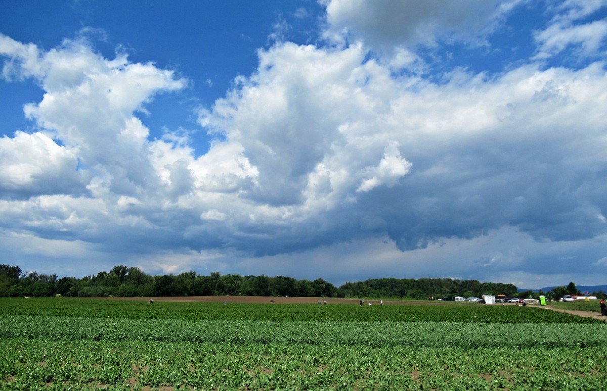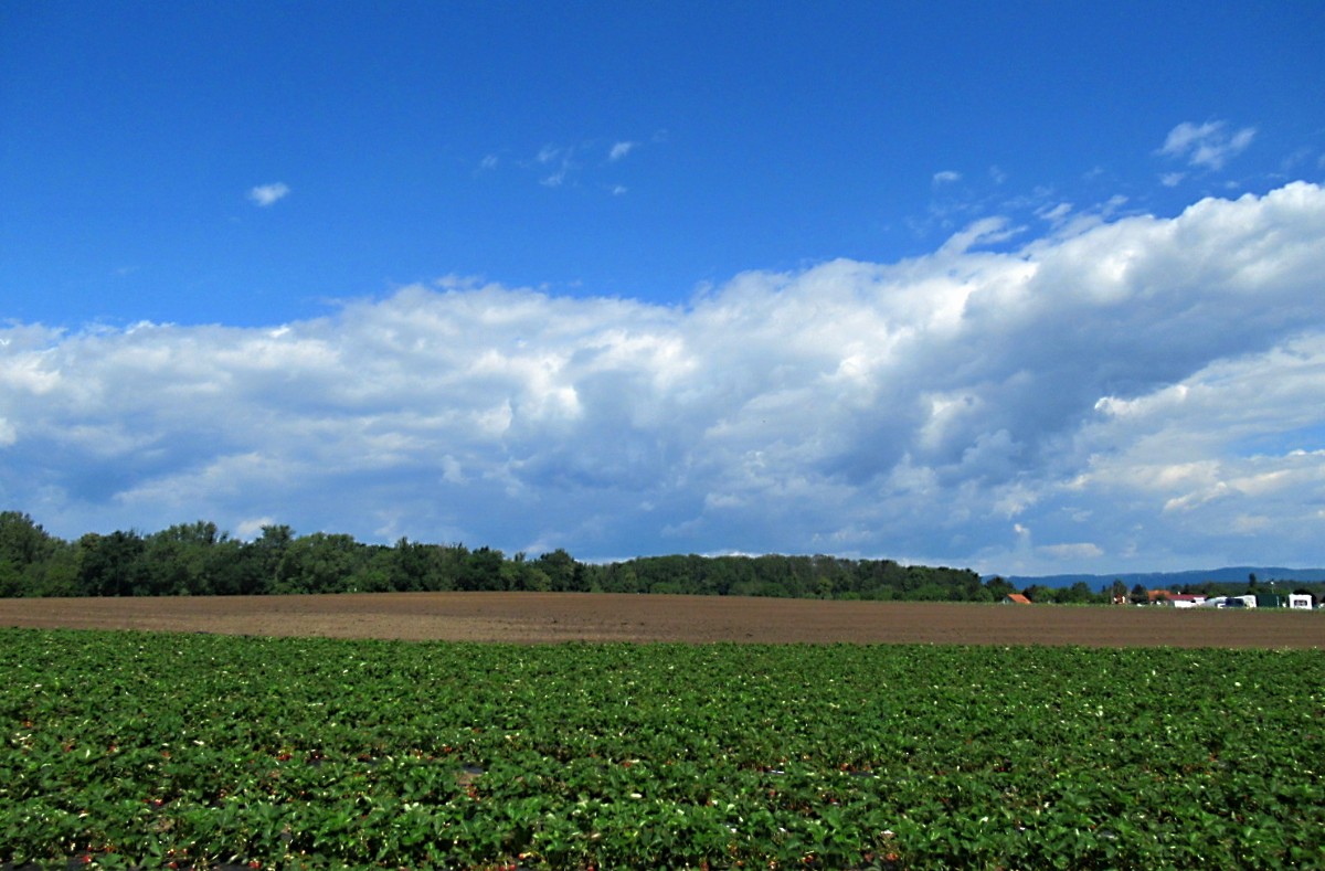 Zaregistrovali jsme se, nechali zvážit košíky, a s dcerou jsme šly k udanému místu sběru. Tedy řeknu vám, že tak velkou úrodu jsem v životě neviděla a že už jsem toho viděla hodně. Jahod bylo tolik, že do košíků málem padaly samy. Ke dvěma košíkům během sběru přibyl ještě jeden, který jsme našli v řádku a malá bedýnka. Mezitím se začaly kupit mraky a vzhledem k tomu, že foťák jsem měla u sebe, jala jsem se místo sběru fotit nebe a okolí, dcera to zvládla za mně. Uběhla asi hodina a my jsme konstatovaly, že nebudeme hamouni a to, co jsme nasbíraly, nám bohatě stačí. Domů jsme si odváželi 10 kg krásných jahod.