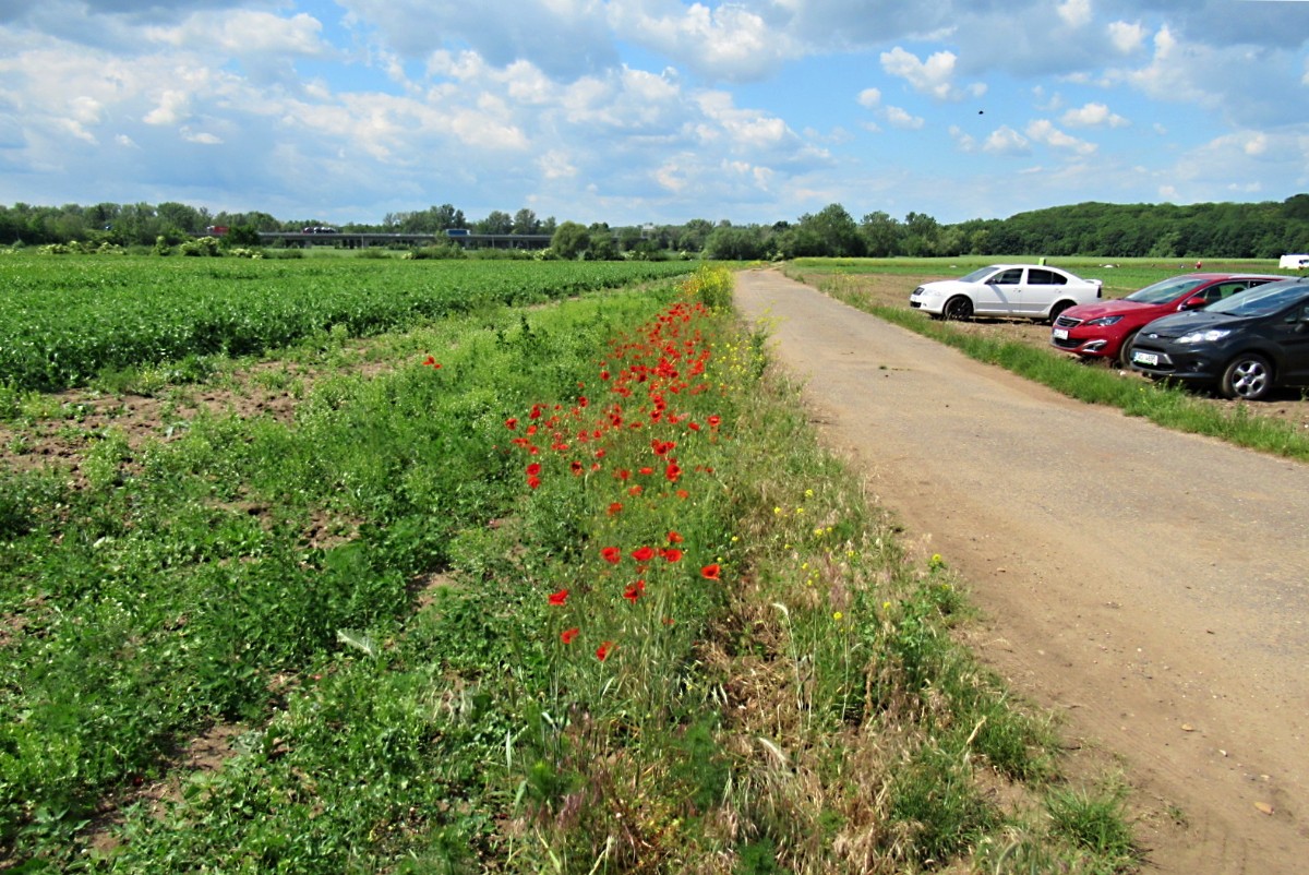 Cesta proběhla v pohodě, po desáté hodině jsme stanuli před dceřiným domkem, vyměnili jsme řidiče, pánečka posadili dozadu k pejskovi a hurá na pole. Z Dolánek je to, co by kamenem dohodil a než jsme se nadáli, byli jsme tam. Tak velké pole jsem fakt nečekala, lidí bylo docela dost, ale vzhledem k rozloze to nebylo tak hrozné.