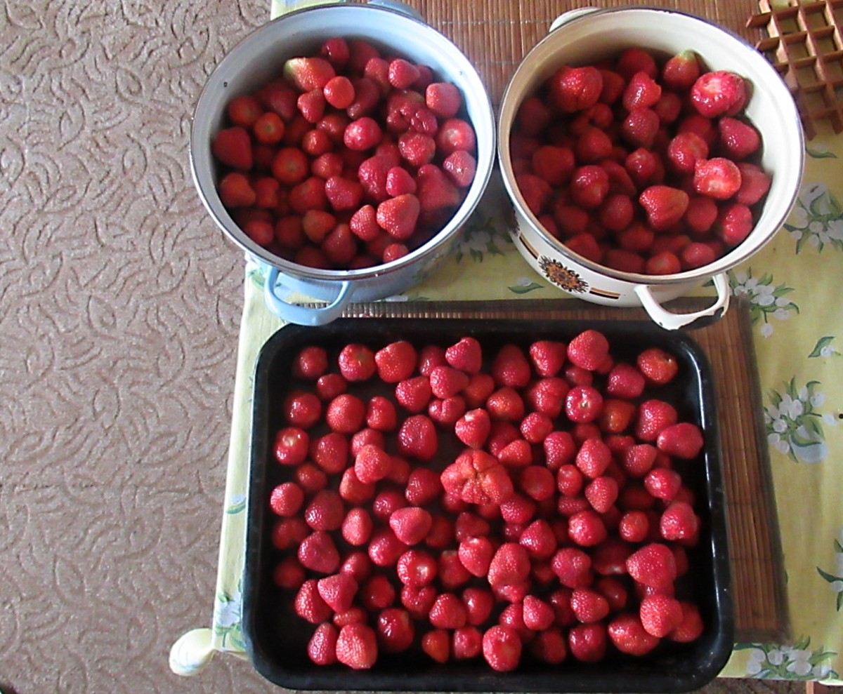 Naštěstí mu to moc dlouho netrvalo, po jeho příjezdu jsme se pustili do zpracováni jahod. Abych nezapomněla, už to nebylo 10 kg, něco si vzala dcera, jeden košík zůstal v Kopistech za kapra, který spíš připomínal velrybu a něco dostala vnučka. A aby toho nebylo málo, když bylo vše hotové, praštila jsem se do hlavy o kovové otvírání dvířek nad dřezem v kuchyni. A tam jsem si konečně pobrečela, protože to fakt bolelo a bolí. A tak skončil jeden všední den jedné rodiny. Kupodivu jsme se všichni shodli, že to byl opravdu hezky prožitý den.