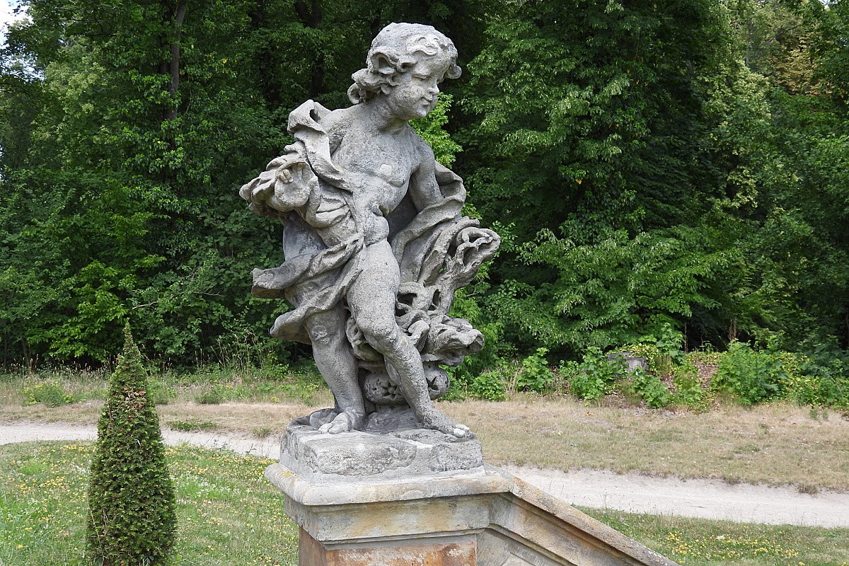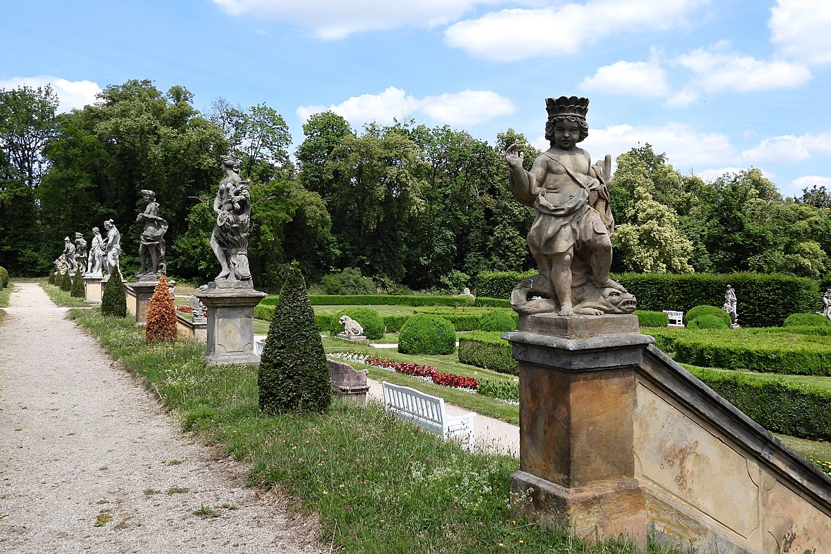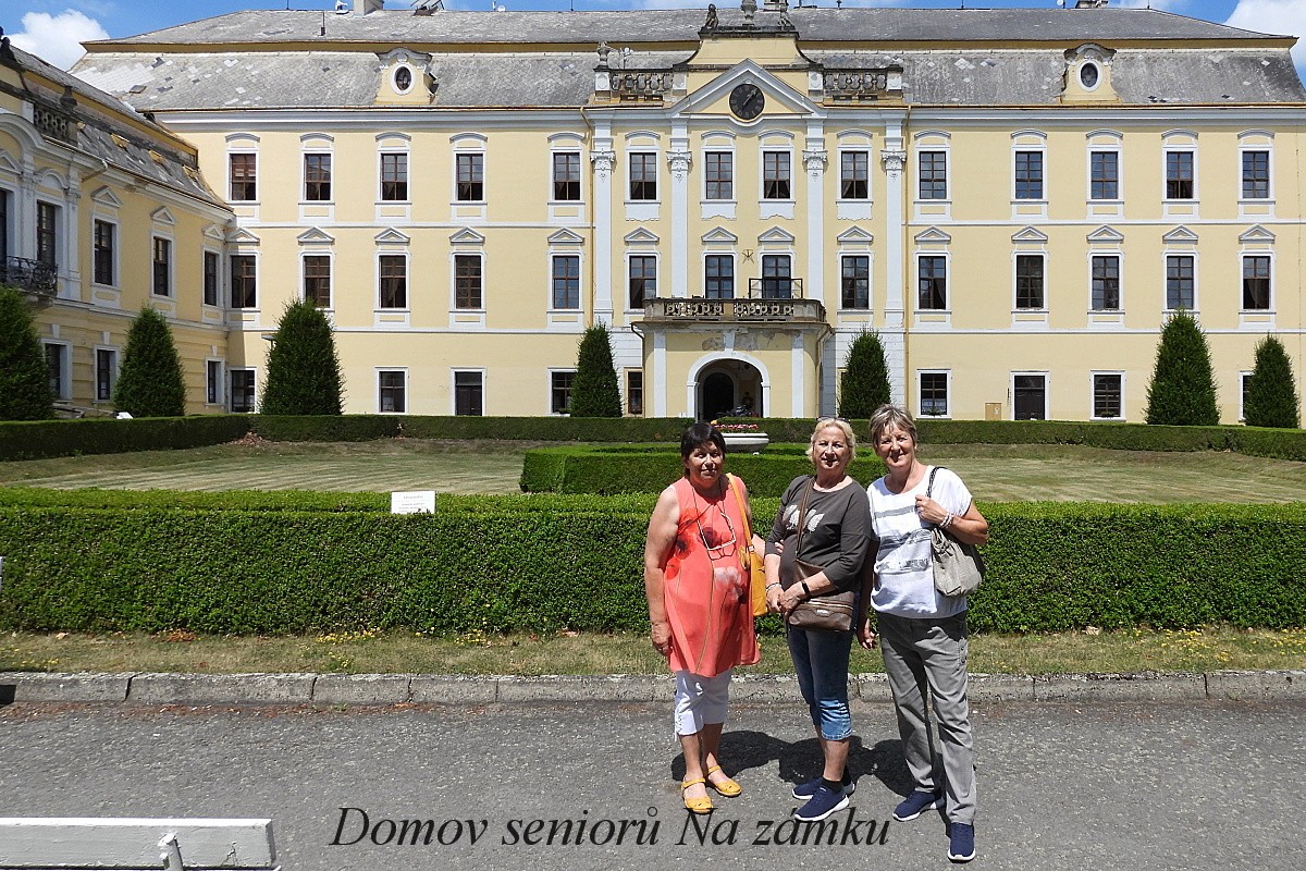 Ale den ještě zdaleka nekončí. Chvíli se věnujeme nákupům a z výstaviště odcházíme bohatší o nějaké květiny do našich zahrad. Po obědě zamíříme k domovu pro seniory na zdejším zámku. Ohromí nás rozlehlost zámku a přilehlého parku. S úžasem si prohlížíme nádherný soubor barokních soch, jejímiž autory jsou Matyáš Bernard Braun a Ignác František Platzer.