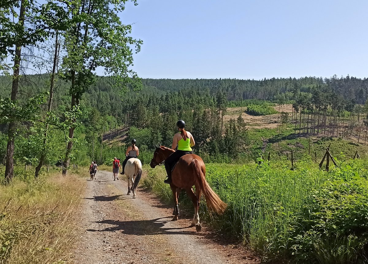 Vyjeli jsme pohodlným autobusem z Hulína 7.30 hod směr Brno, Praha a Plzeň. Ve 13 hod. jsme dorazili do našeho prvního cíle - pod hrad Radyni, který ční nad místem našeho ubytování - Starým Plzencem. Vyšlapali jsme nahoru a po prohlídce a doplnění tekutin jsme pokračovali okolo zajímavých skal Andrejšek přes městečko až k Českénu dvoru, kde nám byly přiděleny hezky zařízené pokoje a čekala nás dobrá první večeře. Ten den jsme našlapali 7 km.