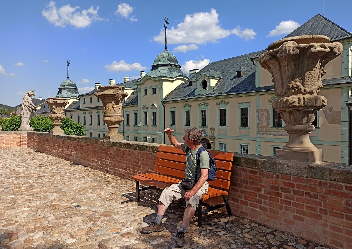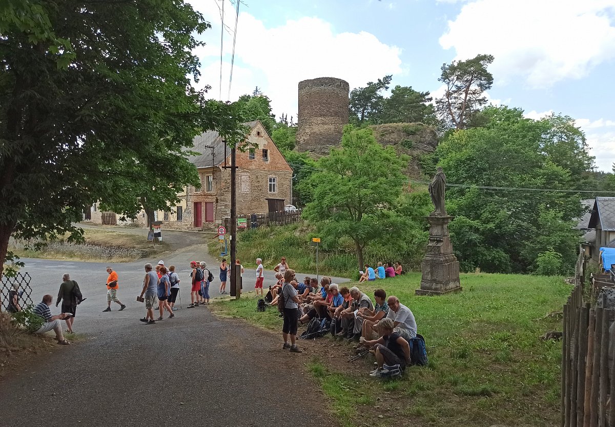 Po snídali a cestě autobusem nás čekal 11 km pochod proti proudu řeky Střely z Mladonic do Rabštejna. Bylo hodně dusno, ale turistická značka vedla převážně ve stínu. V Rabštejně jsme se spojili se slabší skupinou našich turistů, a společně jsme odjeli na prohlídku pamětihodností města Manětína a zámku s přilehlou zahradou. Výbornou kávou s medovníkem v pizzerii na náměstí jsme zakončili náš pobyt v tomto hodně zajímavém místě. Po večeři jsme si s manželem Mirkem ještě vyběhli k Rotundě sv. Petra a Pavla, která je jednou z nejstarších dochovaných církevních památek v Čechách, nad Starý Plzenec nad řeku Úslavu.