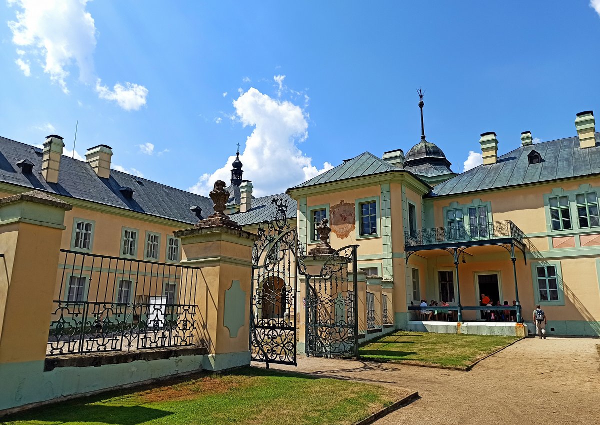 Všechno jednou skončí, i náš pobyt se chýlil ke konci. Rozloučili jsme se s příjemným personálem našeho penzionu, naložili jsme do autobusu svá zavazdla a po společné fotce vyrazili směrem k domovu. To by však nebyli naši vedoucí, aby nám ještě nanaplánovali nějakou procházku a prohlídku. Vystoupili jsme v Šťáhlavech a vyrazili směr zámek Kozel. Počasí se po týdnu začalo kazit a valily se na nás mraky. Pršet začalo, až když jsme čekali na prohlídku atypického čtvercového zámku s krásnou zahradou a rybníkem. Na nádvoří chystal štáb nejmenované televizní stanice prostory na večerní natáčení pořadu 7 pádů Honzy Dědka. To jsme už ale byli, plni dojmů, doma ve vaně nebo v posteli a vstřebávali jsme nádherné zážitky z uplynulého týdne. Plzeňský kraj nás opravdu moc přijemně překvapil!