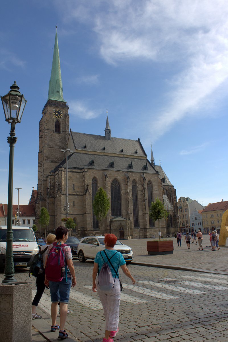 Protože tento den měl pan řidič zákonem stanovené volno, jeli jsme vlakem na prohlídku krajského města Plzně. Začali jsme ji na náměstí, kde nás uvítaly měšťanské domy s krásně zdobenými průčelími od maíře Mikoláše Alše. Je jich na náměstí celkem 19. V deset hodin se otevřela vyhlídková věž na kostele sv. Bartoloměje. Vystoupali jsme 299 schodů a mohli jsme si náměstí a město prohlédnout z ptačí perspektivy. Po prohlídce kostela jsme pokračovali k Velké židovské synagoze. Zaujala nás svým interiérem a pohnutou historií. Je s podivem, že tato stavba přežila holokaust a 2. světovou válku. Byl čas na oběd a my jsme si vybrali restauraci, kde si pečou ve velké peci vlastní chleba a pečivo. Zlákalo nás ukrajinské jídlo - proslavené holubce. Gastronomický zážitek dovršilo vyhlášené plzeňské pivo. Už nám zbývala jen prohlídka areálu Plzeňského pivovaru s upravenými venkovními i vnitřními prostorami a nedala se přehlédnout ani květinová výzdoba v podobě krásných růžových záhonů. Vrátili jsme se zpátky do našeho penzionu a začala příprava na večerní olympiádu. Každý rok si zpříjemňujeme náš pobyt nějakými legráckami v maskách. Tentokrát to bylo ve sportovním duchu. I důchodci si dokáží ze sebe udělat legraci. Byl to vydařený večer, hodně jsme se nasmáli.
