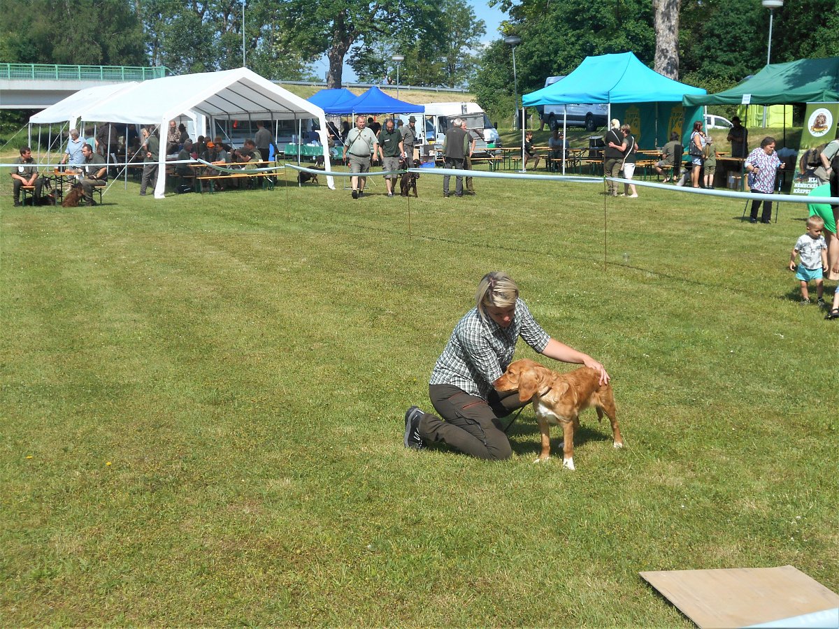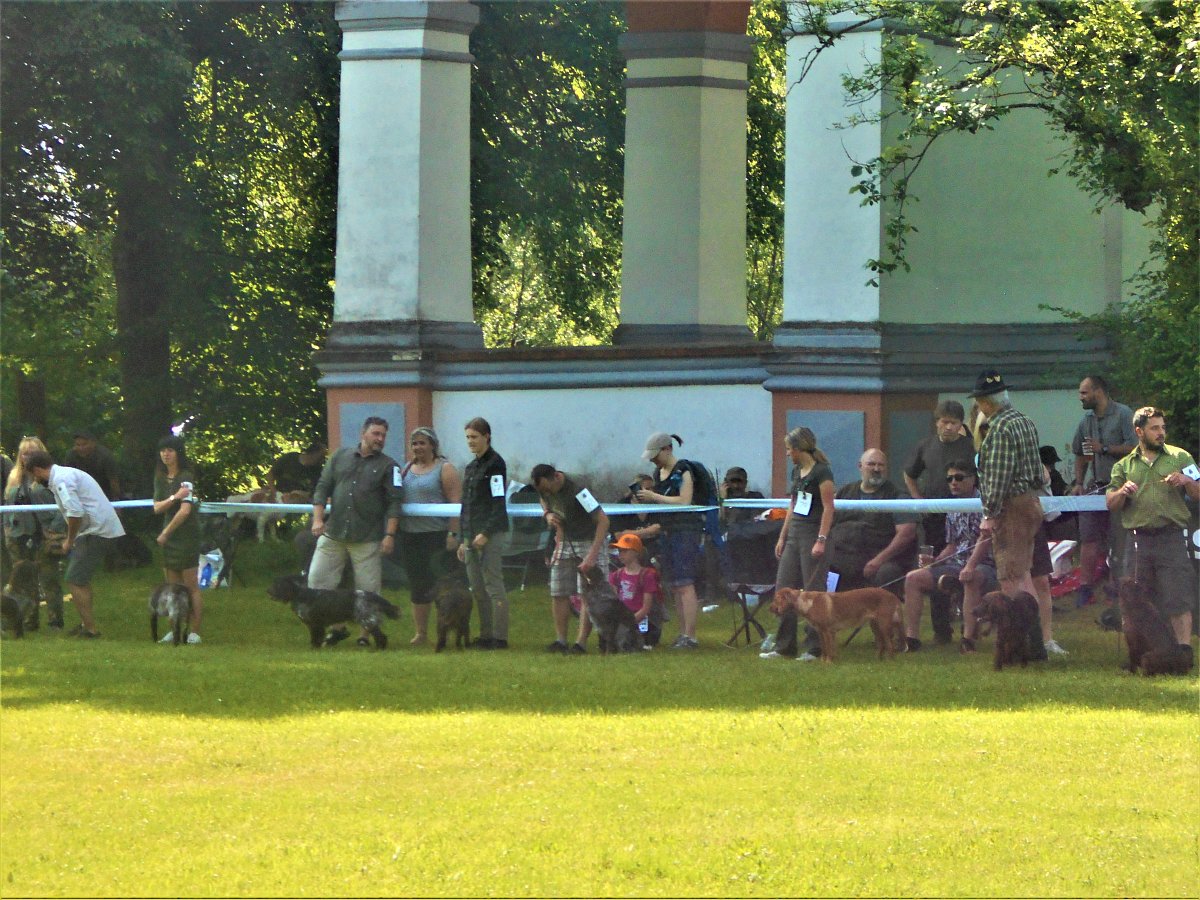 Bylo přihlášeno asi 150 loveckých psů a fen, různých barevnostních variant a stáří (štěně, dospělý atd.). Každý účastník dostal číslo a zařadil se a postupoval k prohlídce. Musel absolvovat se psem běh na vodítku, prohlídka uší, měření - délka i s ocasem atd.