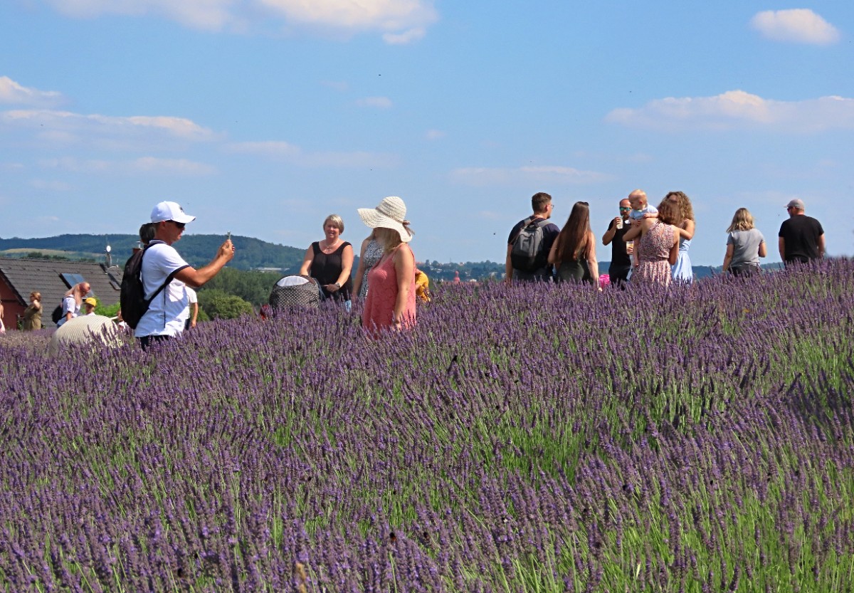 Za slunečného dne vaše chřípí v tetelícím se vzduchu rozechvěje síla levandulové silice a nechce se vám odejít. To je chvíle pro to dát si levandulovou limonádu nebo levandulovou zmrzlinu a posadit se nebo jen tak bloumat mezi řádky, pozorovat cvrkot a užívat si chvíle pohody. Všimla jsem si, že spousta lidí tam jezdí cíleně kvůli fotografování. Není u nás mnoho takových míst, kde si můžete pořídit fotografie, na nichž jste obklopeni levandulí. Jedno z mála je právě tady, v Židovicích. Při odchodu se můžete zastavit u stánku a odnést si třeba levandulovou kytici, polštářek, sirup, mýdlo a další produkty zdejší rodinné farmy.