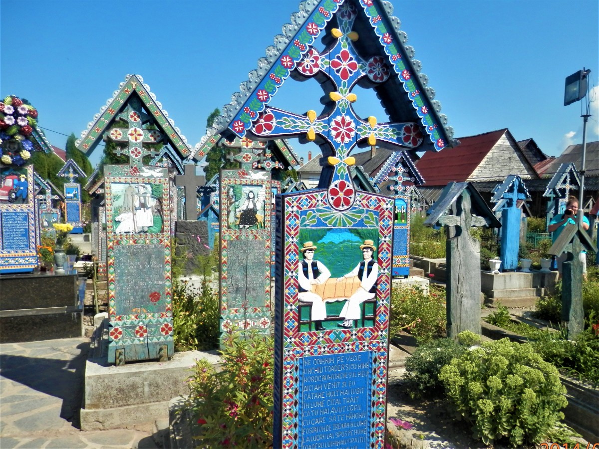 Poprvé a asi naposledy v životě jsme viděli hřbitov, kde nepanuje slavnostně chmurná, ale naopak veselá atmosféra. Cimitirul Vesel (veselý hřbitov) ve vesnici Săpânțav v župě Maramureş je totiž proslulý svými pestrobarevnými náhrobky s naivními malbami, které originálním a poetickým způsobem popisují osoby, které jsou zde pohřbeny. Smrt je zde vnímána jinak než jinde v Evropě, kde je považována za tragickou a smutnou událost. Souvisí to možná s filozofií starých Dáků, na které jsou Rumuni dodnes patřiční hrdí. Jejich filozofické zásady hlásaly nesmrtelnost duše a víru, že smrt je okamžikem naplněným radostí a očekáváním lepšího života.