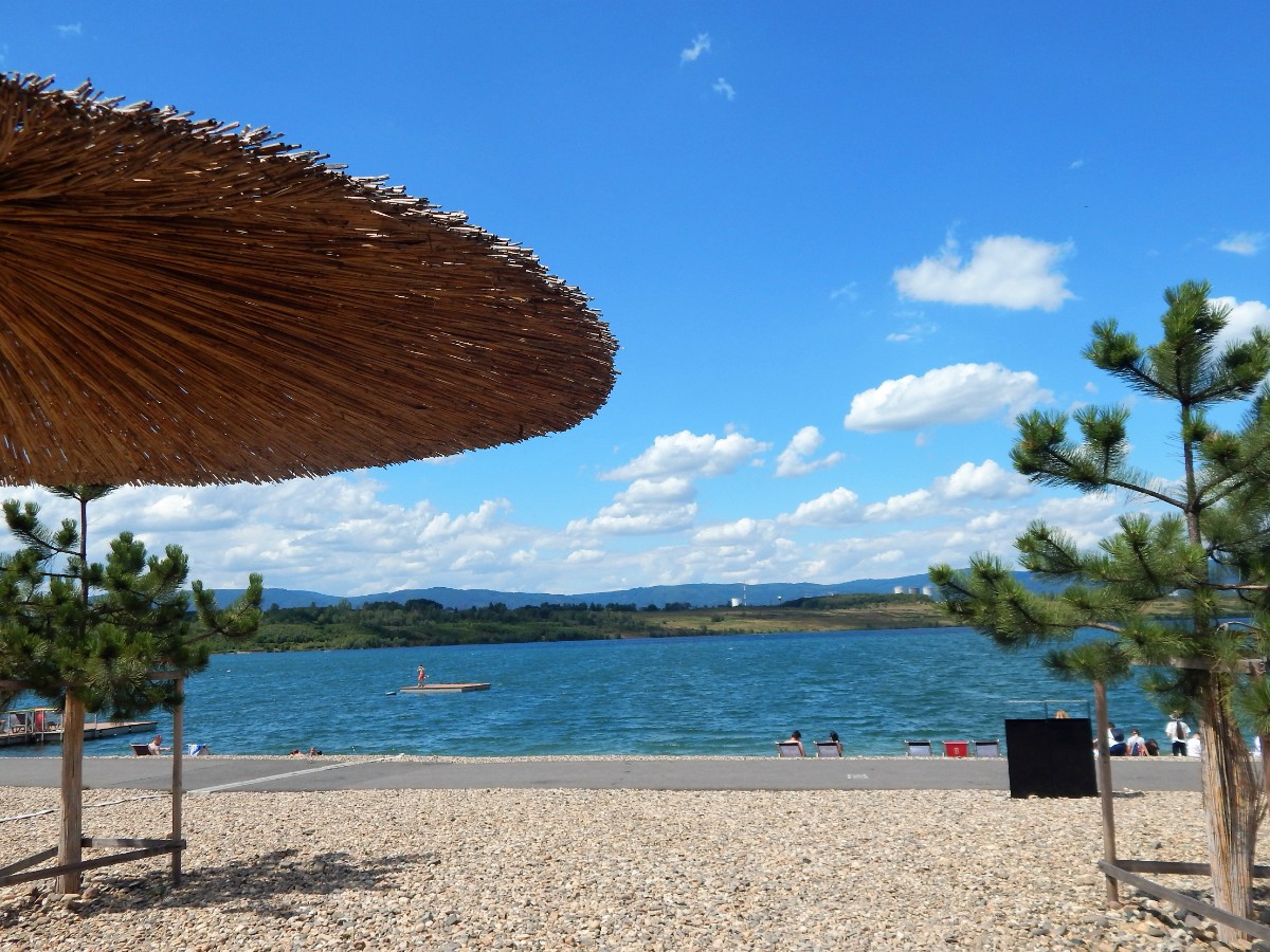 Prostorná silnice, po které jezdí i autobus městské hromadné dopravy, nás dovede k jezeru Most, které vzniklo zatopením bývalého lomu Ležáky. Hloubka jezera je 75 metrů, je široké 1,5 km a dlouhé 2,5 km. V roce 2020 bylo zpřístupněno veřejnosti a vznikla zde rekreační oblast vyhledávaná milovníky plavání, volejbalu a dalších sportů včetně cyklistiky. Návštěvníci tady najdou odpovídající zázemí se sociálním zařízením, občerstvením i parkovištěm. Odměnou je jim nejen příjemné prostředí, ale také krásné pohledy na Hněvín i Krušné hory.
