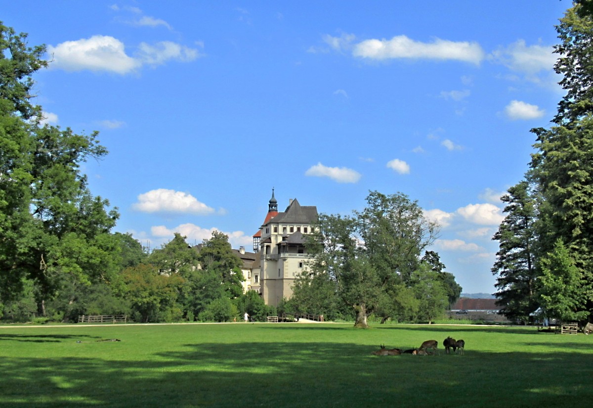 Můžu vám říct, že letošní počasí se opravdu vyznamenalo. Ještě se nám nestalo, že by aspoň jeden den nezapršelo. Ne, celý týden byly teploty podobné těm na pouštích, občas trochu zafoukalo, ale jinak to žluté kulaté na obloze pálilo a pálilo. Nicméně jsme stihli i dva výlety, které vám představím v druhém příspěvku. Párkrát jsme se prošli kolem domu a tradičně v pátek jsme navštívili blatenský zámek. Je to naše tradice a ta se musí dodržet, ale díky tomu, že jsme chodili v parku pod stromy se to dalo přežít.