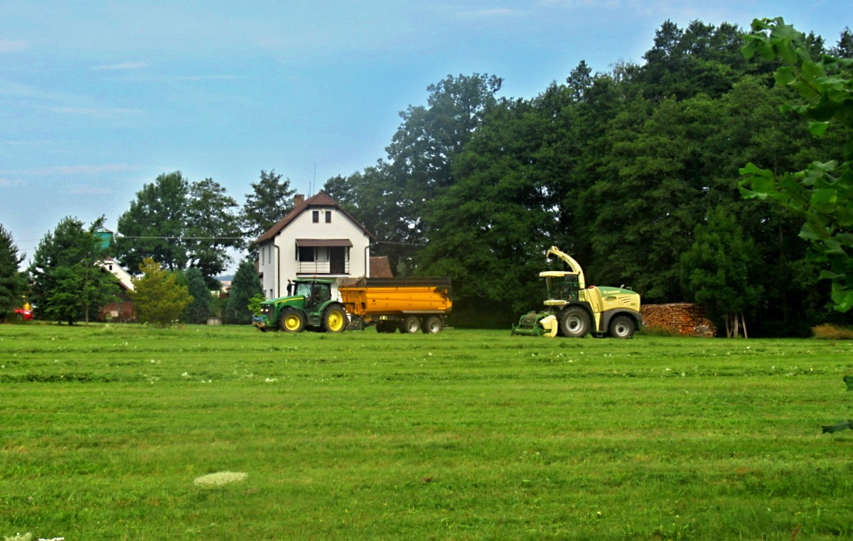 Náš odjezd z domova se jako vždy nesl v plně naloženém autě a se dvěma zvířátky, morčicí Sárou a pejskem Boonečkem. Jeli jsme naší obvyklou trasou přes Plzeň, nezapomněli se zastavit v Mostě na gáblík u McDonalds a vzhledem k tomu, že se všechny města a vesnice po trase rozhodly opravovat silnice, užili jsme si i bloudění. A nejenom to, ale bylo nám i docela teplo. Venku to vypadalo jako na Sahaře, ale v autě díky klimošce se to dalo celkem přežít. Tentokrát jsme byli s majiteli domluveni na pozdějším příjezdu, kvůli rozbitému čerpadlu v domě. Cestování, když nikde nemusíte být v určenou hodinu, je docela bezva. Zastavíte, kdy chcete a cestou se stihnete i kochat přírodou kolem. Samozřejmě kromě řidičky, což byla naše dcera. Na místo určení jsme se i s nákupem v Lidlu dostali po páté hodině, vše bylo na svém místě, na stromě seděl ptáček, jako by nás vítal.