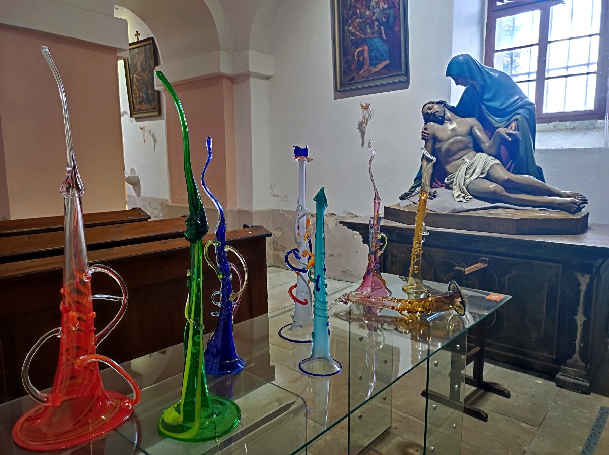 Nyní ještě do 28. srpna máte jedinečnou možnost prohlédnout si výstavu nazvanou Miluše&René Roubíčkovi 100. Manželský pár sklářských výtvarníků se dožil úctyhodného věku - Miluše 93 a René 96 let - a letos by oba slavili sté narozeniny. V posledních letech spolupracovali právě se sklárnou Jiřího Pačinka. K jejich letošnímu výročí narození Muzeum skla a bižuterie v Jablonci nad Nisou připravilo dvojvýstavu, jejíž jedna část je právě v Křišťálovém chrámu a jedna v jabloneckém muzeu skla a bižuterie. Vstup do Křišťálového chrámu si domluvíte přímo ve sklárně, chodí se vždy, když se hromáždí skupina zájemců. Za dobrovolné vstupné si vyslechnete zajímavé příběhy kostela samotného, ale hlavně skla a jeho tvůrců. Jistě nebudete odcházet zklamáni a budete se vracet, tak jako já.