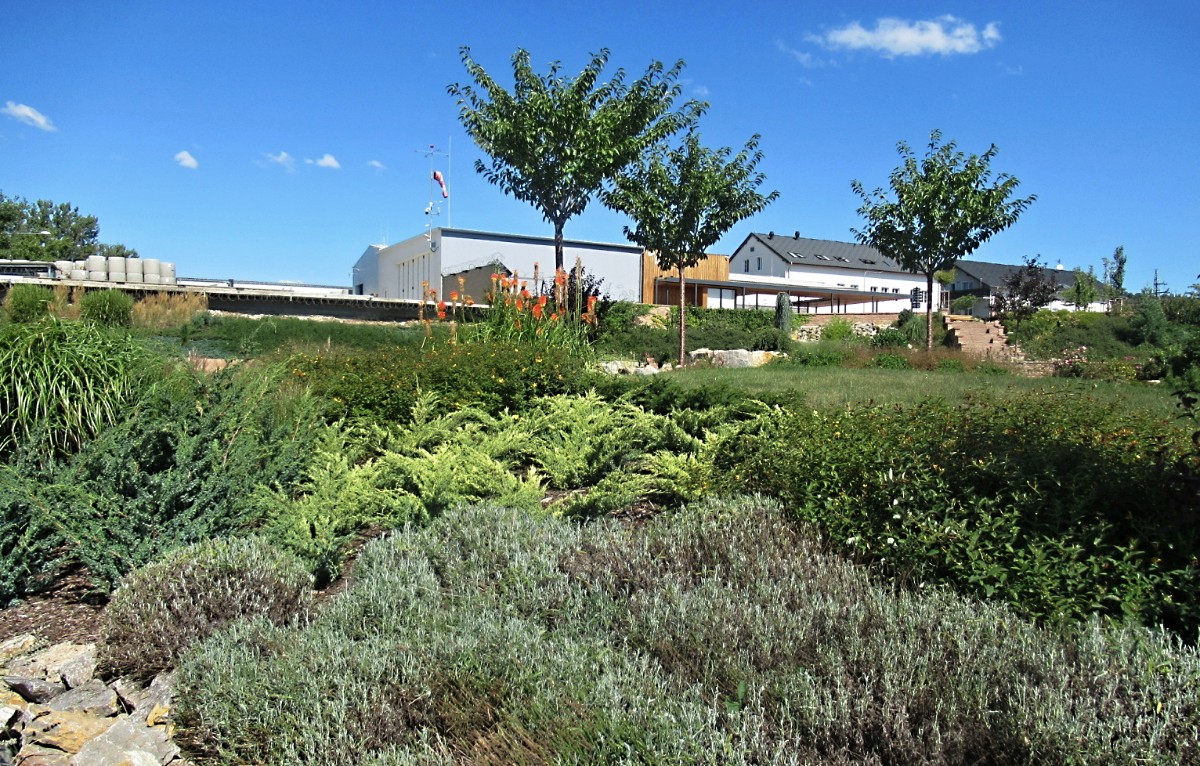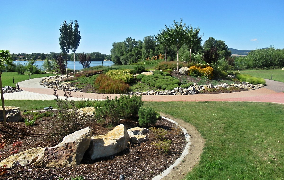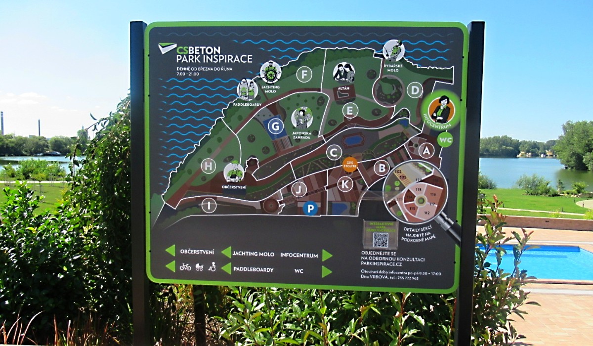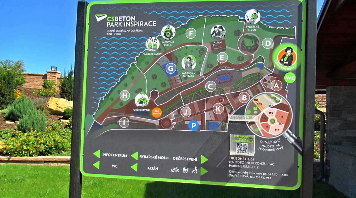 Minulý týden jsem se od kamarádky dověděla o jednom zázraku. Dneska jsme se s manželem, vnučkou a snachou jeli na ten zázrak podívat, není to od nás daleko. Nachází se v obci Velké Žernoseky, které jsou všeobecně známé pěstováním moc dobrého vína a pak je tu ještě místní betonárka CS-BETON. A právě tato firma se postarala o ten zmiňovaný zázrak, který se nazývá Park inspirace. Květiny, keře a stromy jsou tu v harmonii s betonovými zdmi, schody, jezírky a jinými výrobky z betonu. Betonárka je v provozu od r. 1992 a musím říct, že tohle se jim opravdu povedlo. Na park navazuje Žernosecké jezero, firma pamatovala i na rybáře a vybudovala jim pěkný koutek.