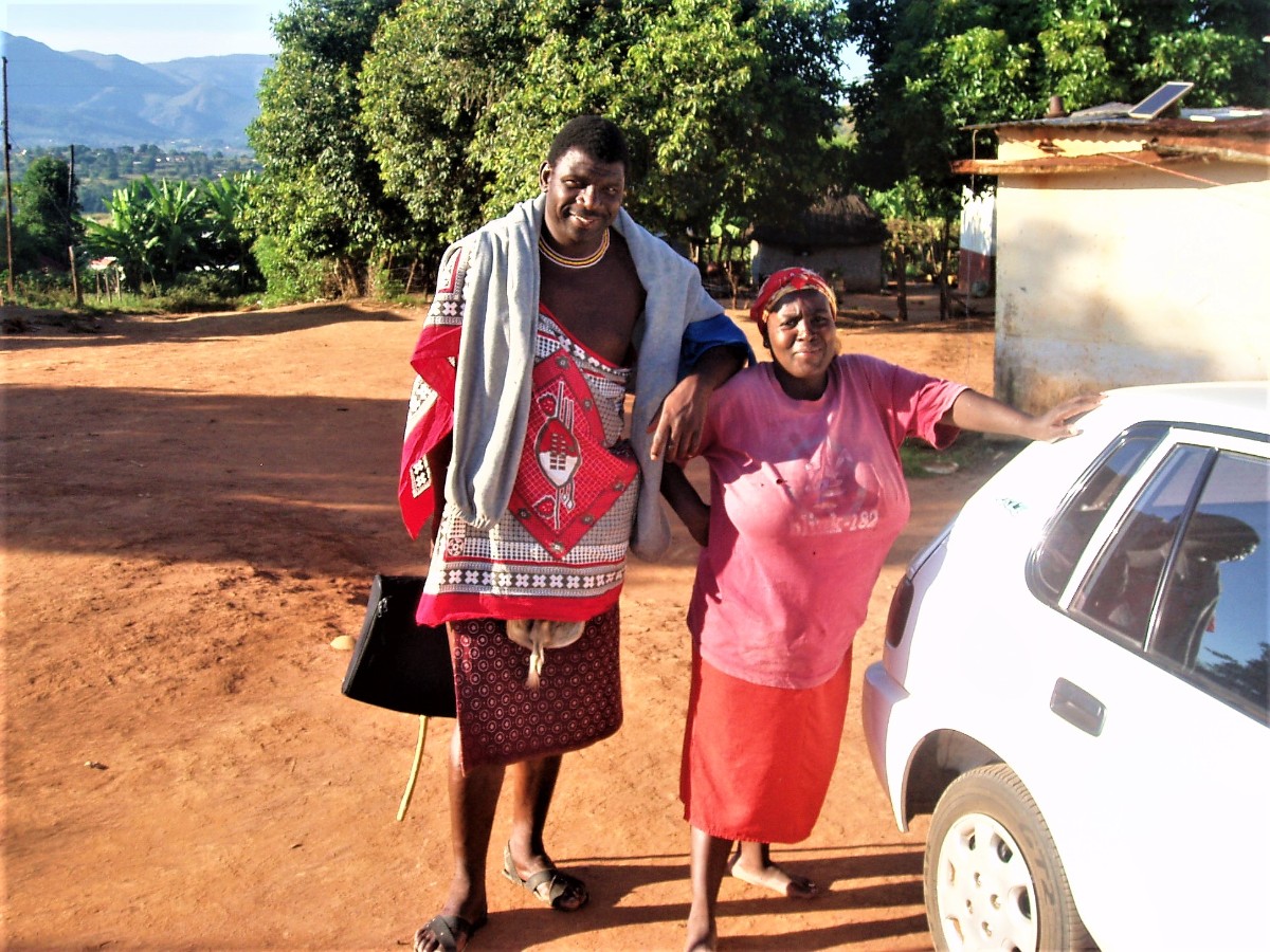 Naše další setkání s urozeným Svazijcem bylo rozhodně lepší. Jednalo se o průvodce ve skanzenu s typickými svazijskými chýšemi, v jehož žilách kolovala královská krev. Poněvadž viděl náš zájem o kulturu svého národa, nabídl nám zprostředkování návštěvy tradiční svazijské vesnice, kde žili jeho předkové. Ve skanzenu byl oblečen v leopardí kůži, na cestu si ale s praktických důvodů vzal méně exotický, ovšem přesto tradiční háv. I on nám sice dával najevo svoji nadřazenost, ale již sympatičtějším způsobem, když nás seznamoval se zvyky svého národa. Cestou jsme se stavili v pouliční restauraci na oběd a náš průvodce daroval svému zcela neznámému krajanovi, který seděl u vedlejšího stolu, polovinu svého jídla. „Je to náš zvyk, skoro povinnost“, sdělil nám s výrazem, který napovídal o určitém pohrdání naší individualistickou západní kulturou.