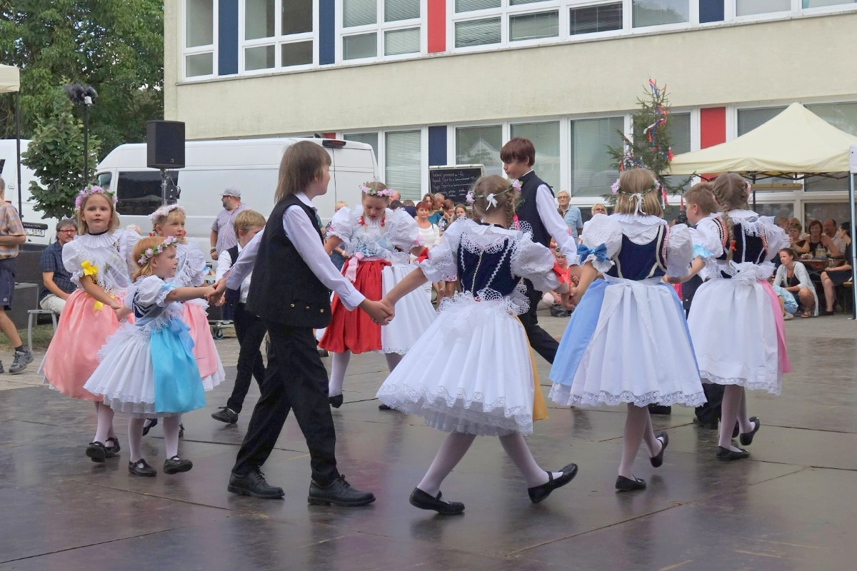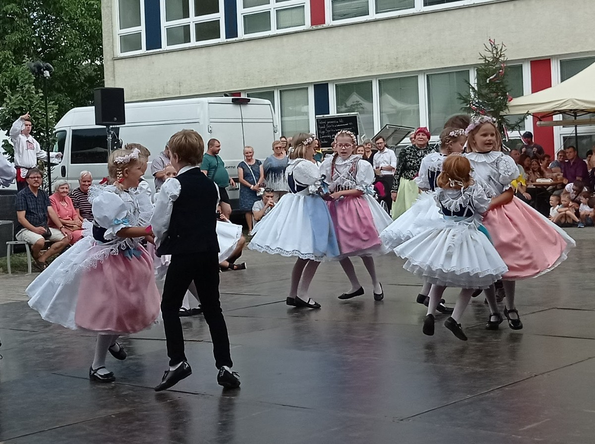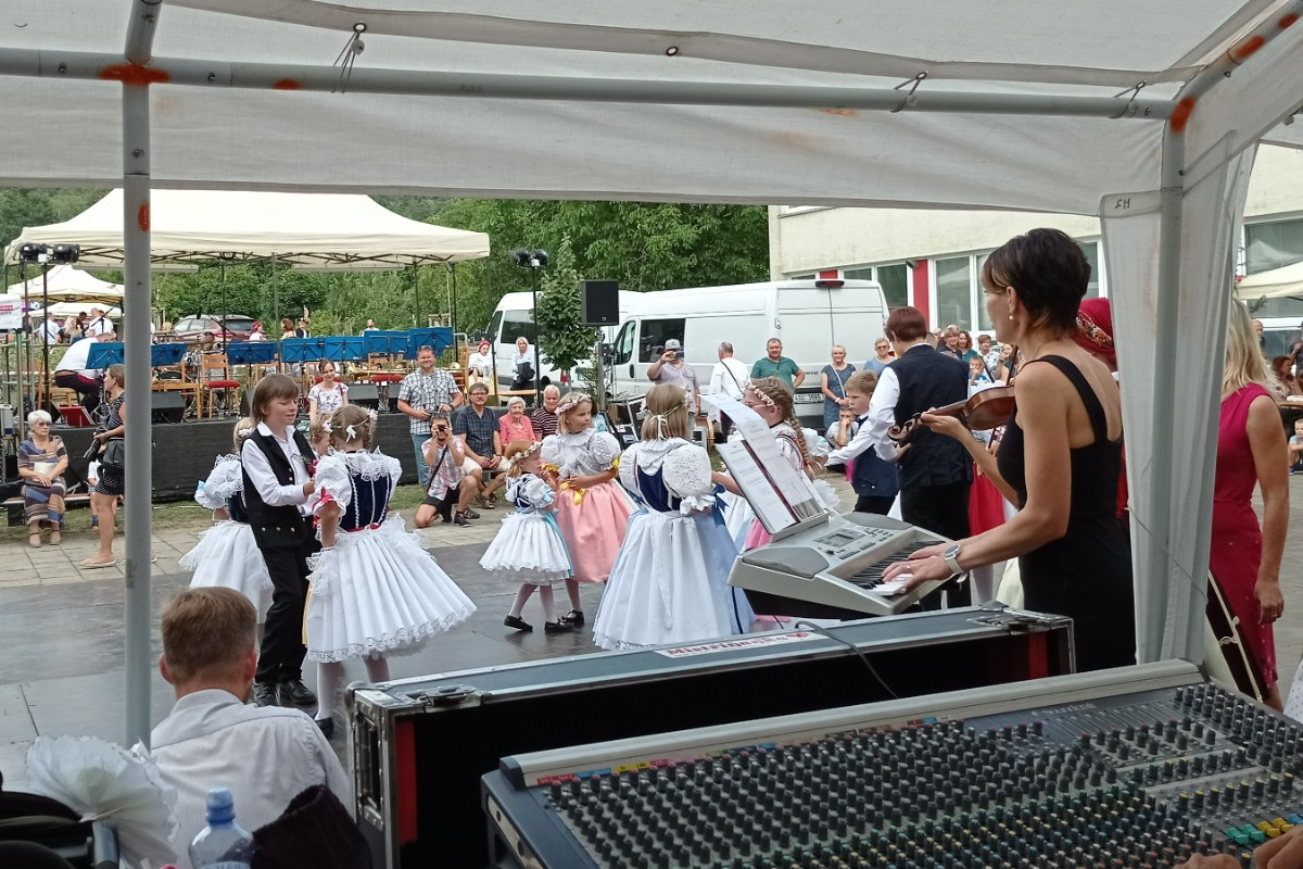 Paní Caletková v roce 2002 založila dětský folklórní soubor Komíňáček, který tak letos slaví dvacetileté výročí. Má v současnosti 16 dětí ve věku 5-13 let a už nyní se hlásí další zájemci.