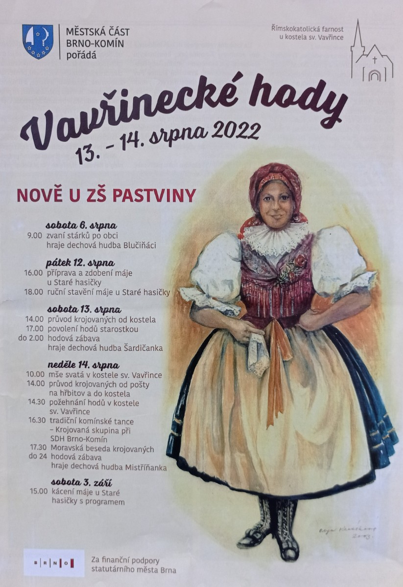 Letos po dlouhé době se mi podařilo být v Brně v čase Vavřineckých hodů, které se konají v MČ Brno - Komín. Líbí se mi, že se tu tato tradice udržela až do dnešních dnů a že neustále dorůstá mladá generace. O to se velkou měrou starají paní Ludmila Caletková, Gabriela Jozová, Anna Staňková a mnoho dalších.