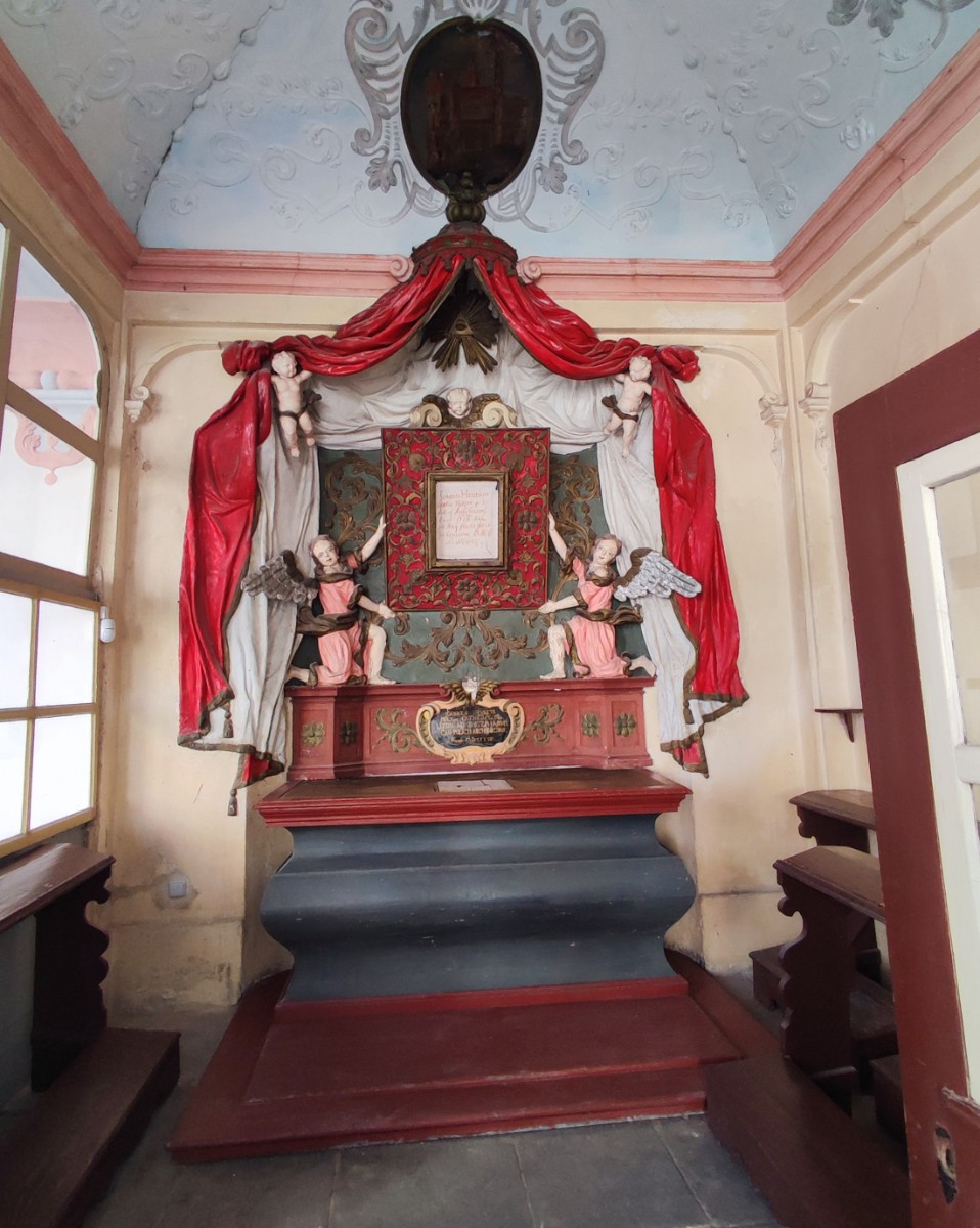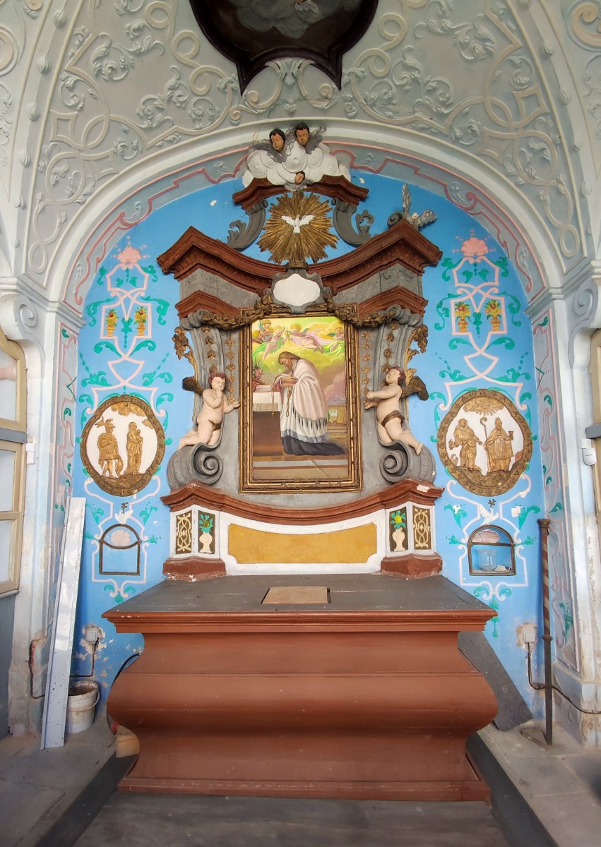 Ryze současnou zajímavostí je nahoře zahnutá roura, trčící ze země na nádvoří, tzv. Poesiomat. Je jedním z v poslední době umístěných v Sudetech u opuštěných kostelů. Stačí zatočit klikou a můžete se zaposlouchat do příběhů...