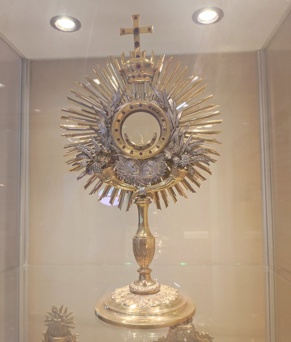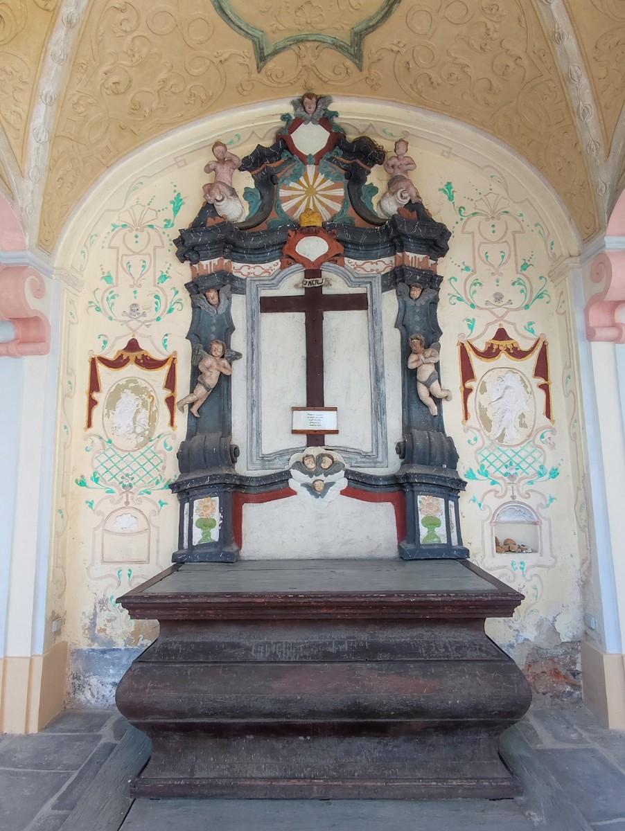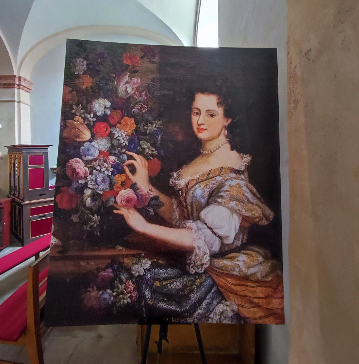 My jsme se do Horní Police vypravili v neděli odpoledne a dobře jsme udělali. Areál je jinak sice otevřený, ale nepodíváte se do kostela. Ten je návštěvníkům přístupný právě jen o nedělích od 13 do 18 hodin. Ve chvíli, kdy jsme na místo dorazili, tam kromě nás nikdo nebyl. Ujala se nás ochotná průvodkyně, která nás provedla kostelem a seznámila nás s jeho historií i různými zajímavostmi. Ukázala nám např. i dvě svíce z 1. poloviny 16. století, které nebyly nikdy zapáleny. Traduje se, že při jejich výrobě byl do materiálu přimíchán střelný prach a z toho důvodu nikdy nikdo nenašel odvahu vyzkoušet jejich rozsvícení. Zavedla nás i na ochoz, odkud jsme se dívali do prostoru překrásně opraveného kostela shora a kde je i umístěna ve vitrínách výstava o historii areálu a některé liturgické předměty.