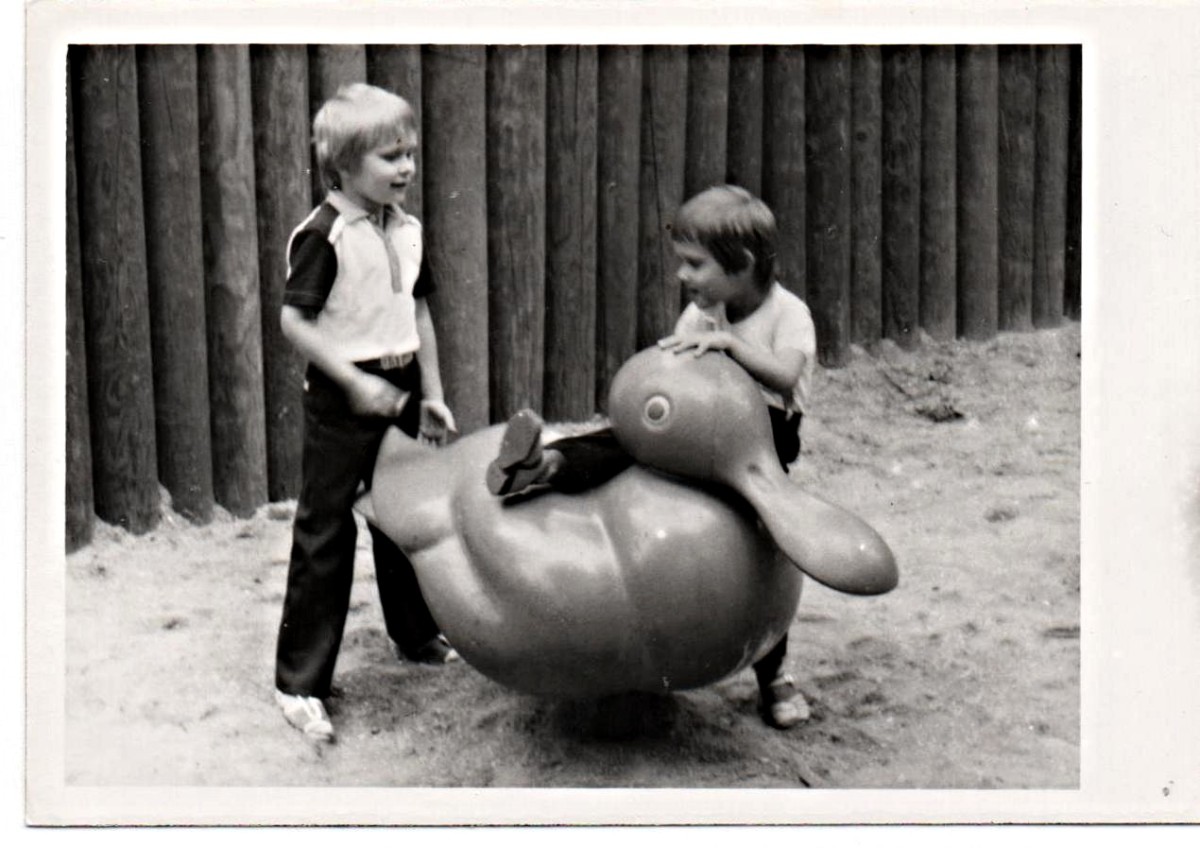 Se zoologickou zahradou mám spojený zážitek z roku 1981, který z mé hlavy asi nikdy nevyprchá. Byli jsme tenkrát na výletě v zoo s našimi malými dětmi a byla s námi i moje maminka. Mladší syn byl roční a hověl si většinou na kočárku, staršímu byly právě tři roky a bylo třeba za ním neustále běhat. Přišla chvíle, kdy se chtěl podívat na opice, jenže dobře neviděl a já jsem ho chtěla zvednout. Naše úmysly se sešly a v okamžiku, kdy jsem se nad ním sehnula, že ho chytím a zvednu, rozhodl se vyskočit. Jeho blonďatá hlavička narazila zespoda do mé brady a měla jsem černo před očima. Následující okamžiky mám ve tmě, pamatuji si, jak jsem pak ležela na lavičce a pomalu se z tvrdé rány vzpamatovávala. Při každé návštěvě zoo si tento okamžik vybavím a zopakovat si ho vůbec netoužím. Na první fotografii jsme zachyceni chvíli před touto událostí.