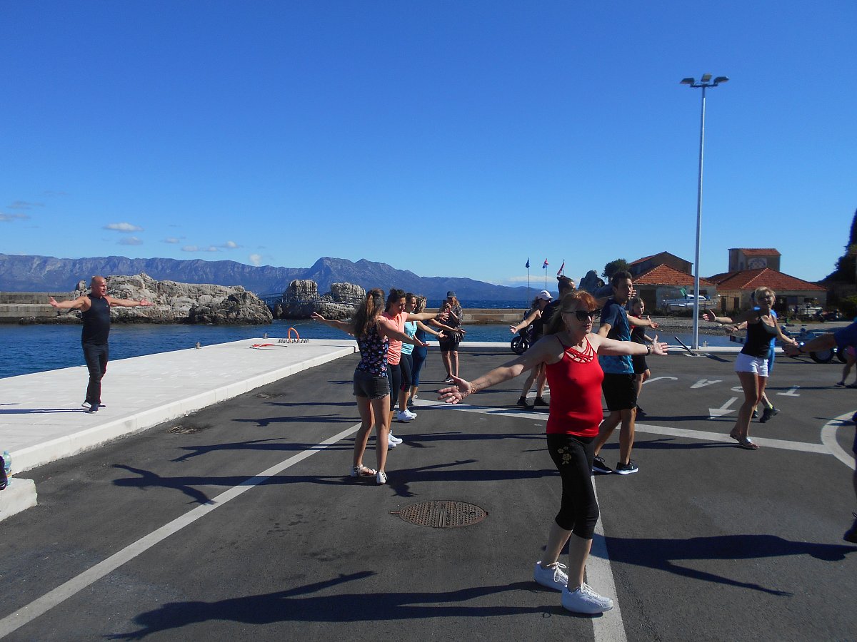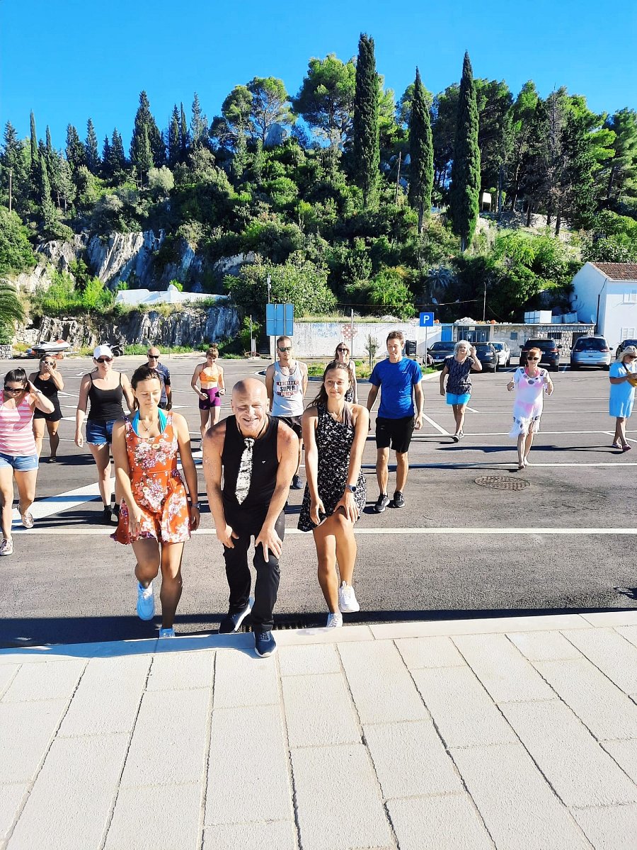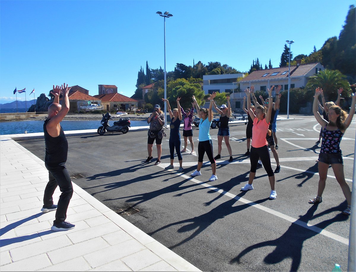 Cestovali jsme poschoďovým autobusem do přístavu Ploše a odtud trajektem na poloostrov Peljesač, přímo do městečka Trpanj. Dvakrát denně jsme trénovali nejprve na hřišti, potom u přístavu, tančili jsme v ulicích. Náš guru uměl rozproudit krev v žilách, ženám i mužům všech věkových kategorií. Při výletu do historického Dubrovníku jsme tančili na náměstí i v přístavu za potlesku turistů.
