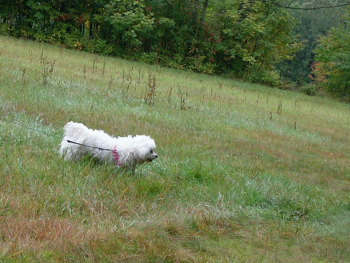 Hory jsem poznala v zimě, když jsem byla ještě drobek. Hodně to studilo a byla jsem venku vždycky jen chvilku. Na jaře to studilo míň, ale zase to foukalo. V létě bylo vedro, naši mi s sebou brali lahvičku s vodou a takovou malou červenou cestovní mističku. Taky pořádnou velkou misku s vodou jsme měli s Valdou ve stínu za chatou. Teď poznávám podzim a je to prima.