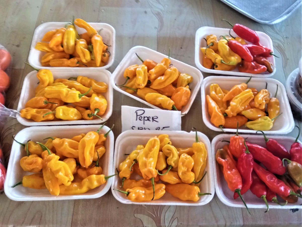 V neděli se v Paramaribu konají trhy. Dva čínské, javánský a květinový. Rovněž některé ulice jsou plné stánků s oděvy. Na čínském trhu se prodává hlavně jídlo, lze ho sníst i na místě. Manžel se dal do řeči s Indonésankou z Jakarty, která kupodivu prodávala na čínském trhu, a ze zdvořilosti jsme si od ní koupili ananasové koláčky. Nelitovali jsme, chutnaly výborně. Od Číňana jsme zase koupili purpurově zbarvené „dračí ovoce“. To se připravuje tak, že se rozřízne na polovinu a vnitřek se jí lžičkou. Má lahodnou chuť a je fialové i uvnitř. Existuje také varianta, kdy je uvnitř bílé. Na javánském trhu se prodává nejen ovoce a zelenina, ale i sazeničky. Největší fronta byla ovšem na satay, kuřecí špíz s kešu omáčkou. Na oběd jsme se odebrali do brazilské čtvrti. Našli jsme tam restauraci s typickými brazilskými jídly, objednání probíhalo výhradně v portugalštině. Bylo to jediné místo v Paramaribu, kde nabízely čerstvé ovocné šťávy z nejrůznějšího tropického ovoce, včetně guayavy, maracuji a aceroly.