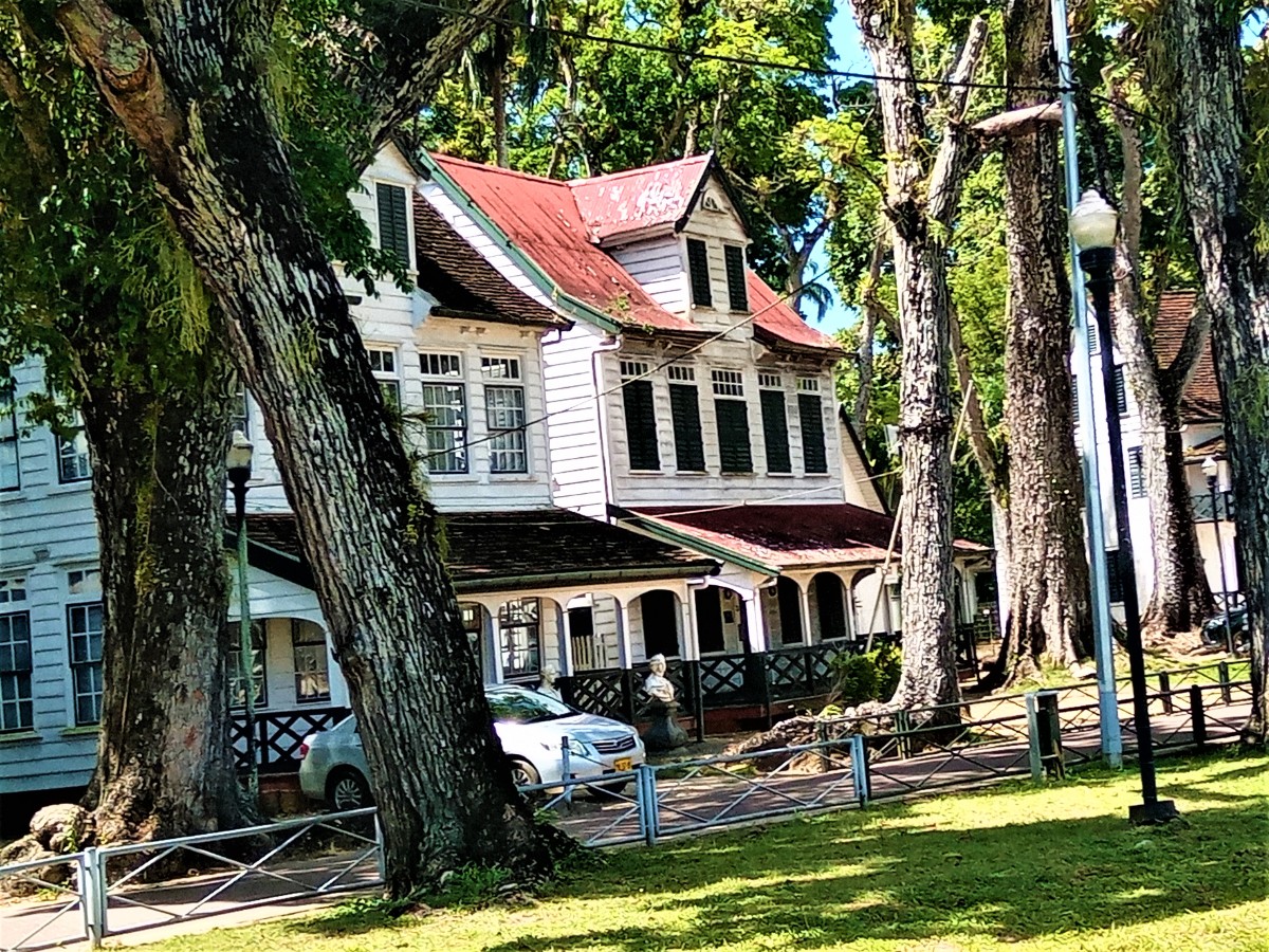 Hlavní město Surinamu se oficiálně nazývá Paramaribo, ale místní mu říkají zkráceně Parbo. Jeho historická část je zapsána na seznamu světového dědictví UNESCO. Abychom si odpočinuli od ruchu města, prohlídku zahajujeme v palmové zahradě Palmentuin, kterou pro veřejnost otevřel již v roce 1685 tehdejší holandský guvernér. Poletují zde ptáci, palmy poskytují chladivý stín a nejsou tady skoro žádní lidé. Jsou zde však chýše určené pro pikniky původních obyvatel a malý memoriál k uctění památky Indiánů, kteří byli jako jinde v Americe předmětem genocidy ze strany kolonizátorů. Dnes představují pouze 5% obyvatel Surinamu. Palmová zahrada leží mezi prezidentským palácem a nově vybudovanou pěší zónou vedle vodního kanálu. Nacházejí se zde stánky, kde se prodávají řemeslné výrobky Indiánů, jídlo a nápoje. Jezdíme starším pickupem, který řídí Kenneth, bratr majitele našeho penzionu - Gordona. Duší podniku je však Sanja, jeho srbská manželka. Oba bratři jsou kreolové, žili 10 let v Holandsku a mají nizozemské pasy. V důsledku časového rozdílu jsme první den brzy vstávali, takže jsme jeli na oběd dříve než obvykle. Jazyková bariéra v restauraci padá, když zjišťujeme, že jedna servírka je Kubánka. Manžel se v osmdesátých letech naučil španělsky právě od Kubánců. Zjihlá Kubánka nám ukazuje fotku své bělovlasé matky s dotazem, zda ji neznáme. Byla totiž součástí internacionální kubánské brigády v tehdejším Československu. Bohužel jsme ji zklamali.
