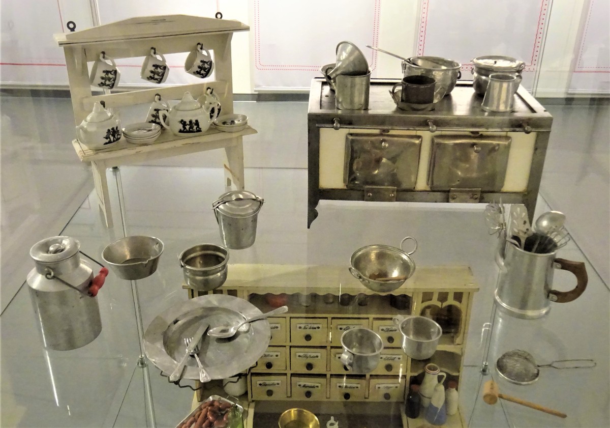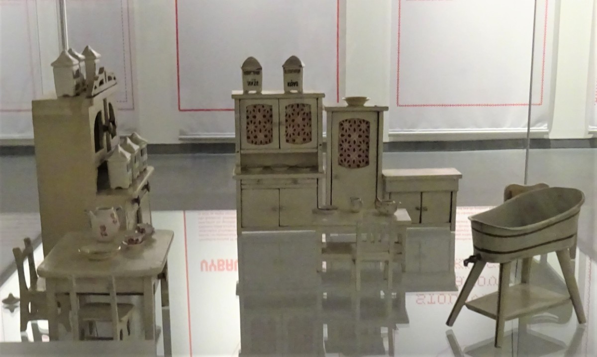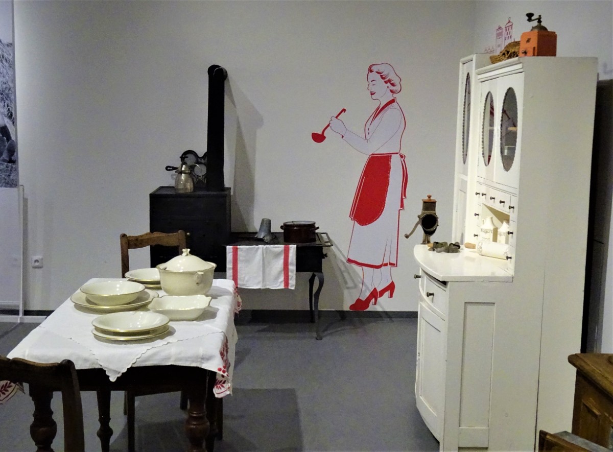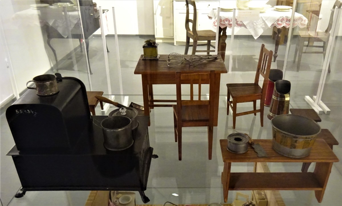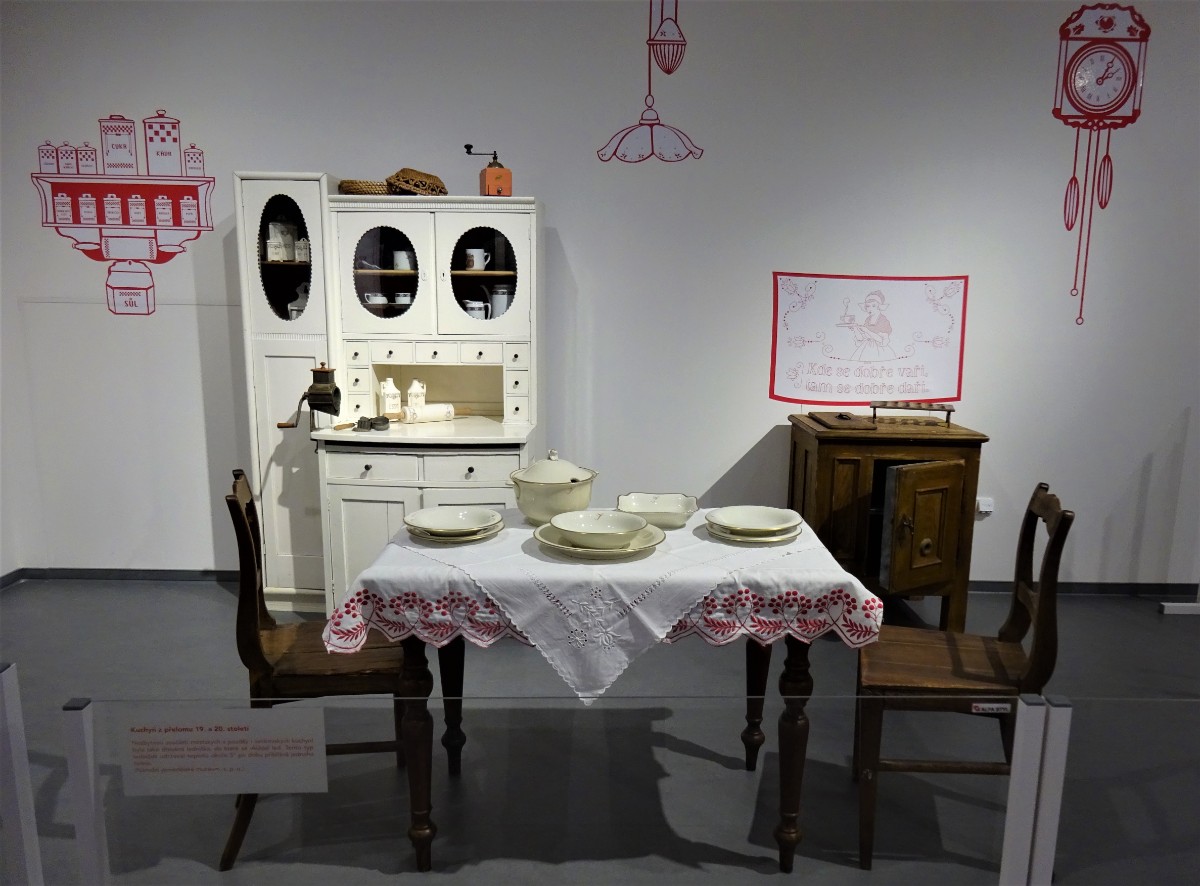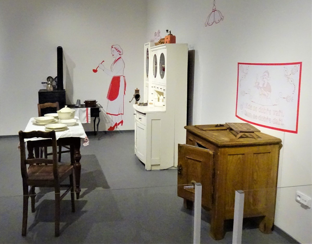 V místnosti se nachází kuchyň z přelomu 19. a 20. století. Ve vitrínách jsou vystaveny modely kuchyní a kupeckých krámů z první poloviny 20. století Omlouvám se za horší kvalitu těchto fotografií, způsobenou osvětlením nepřejícím fotografování.