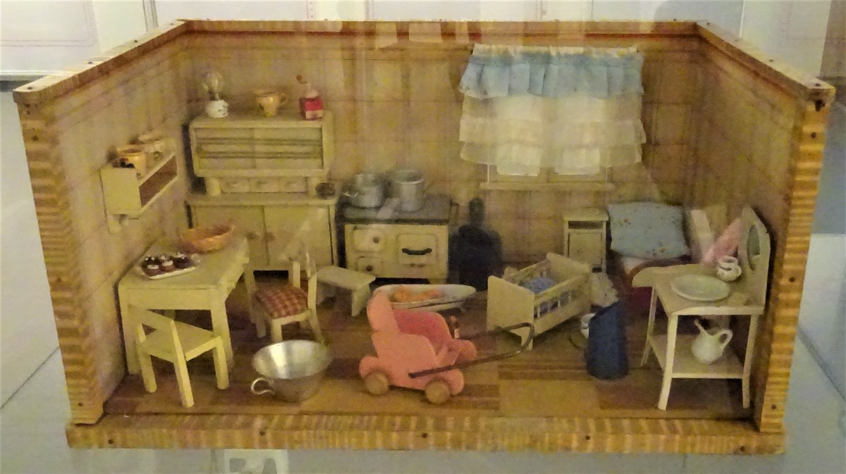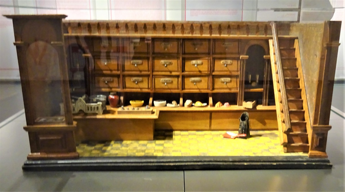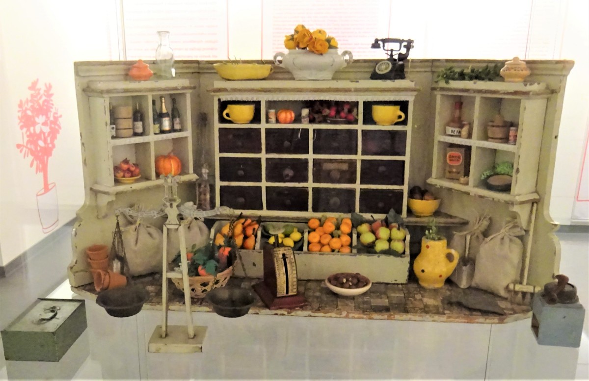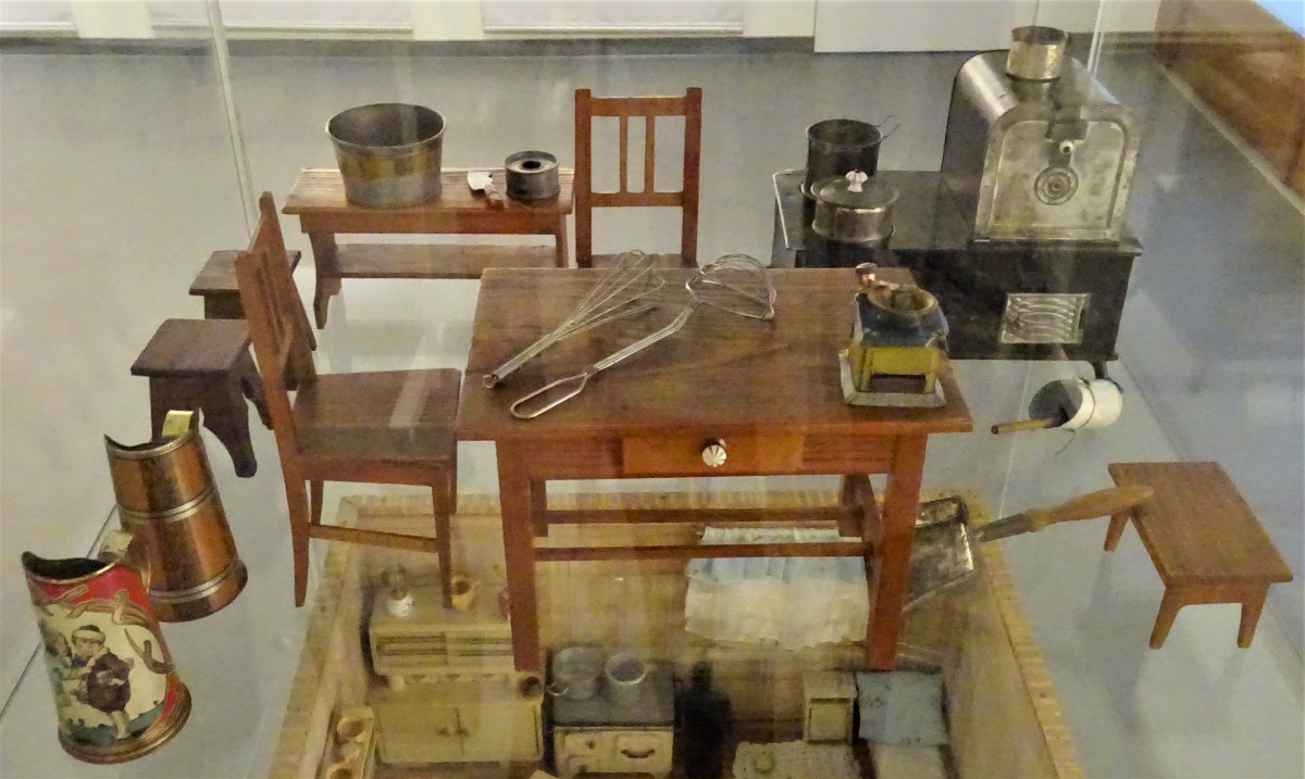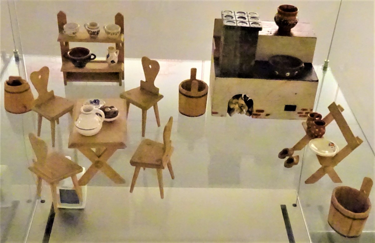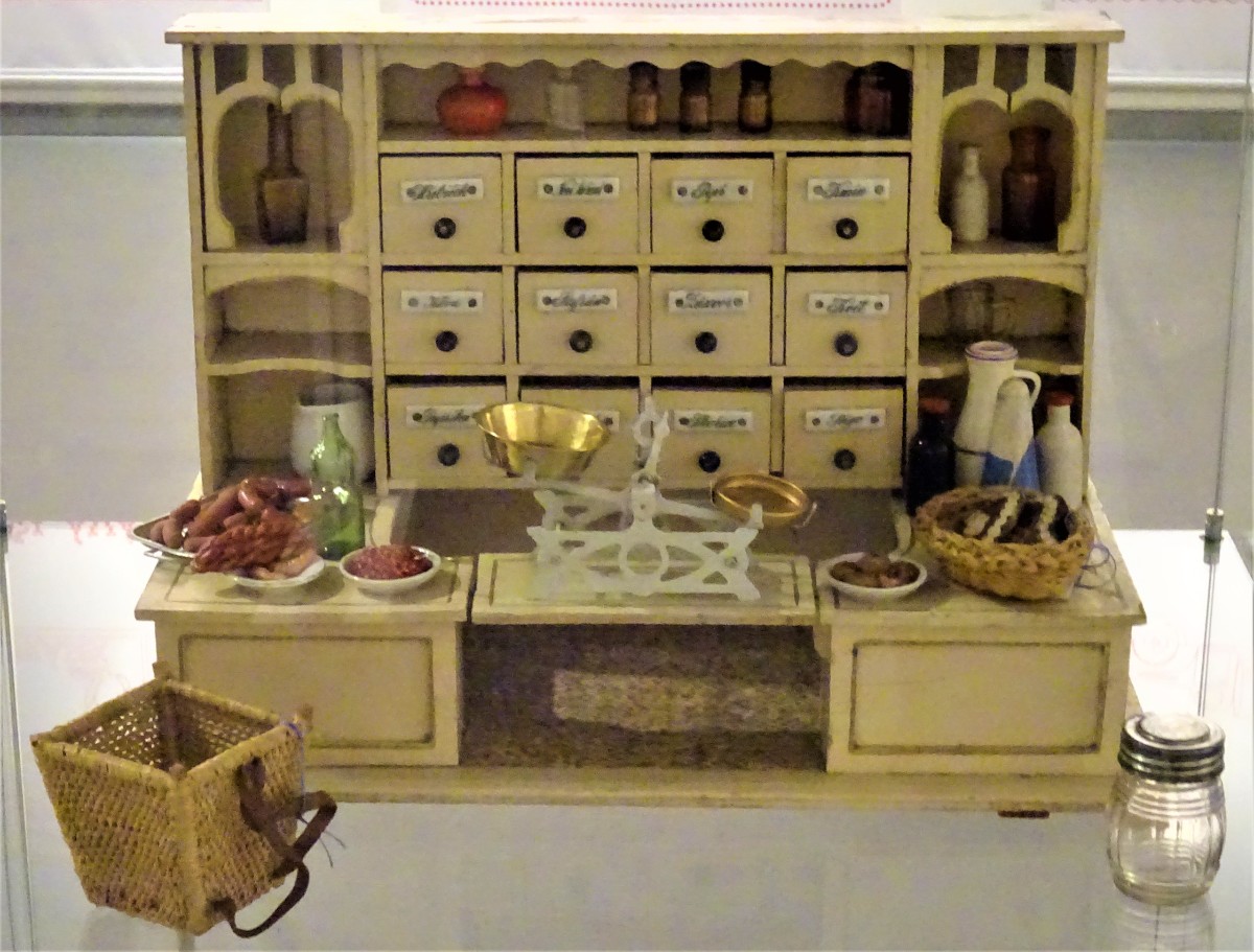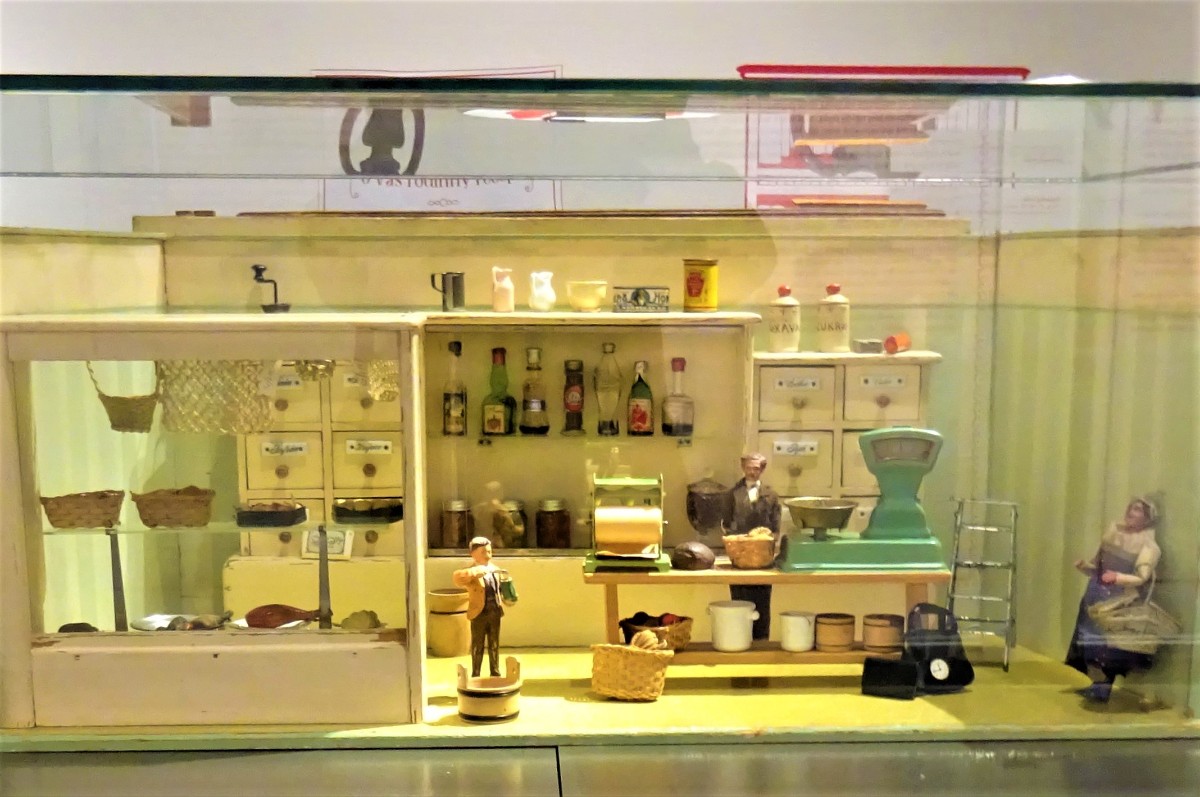 V místnosti se nachází kuchyň z přelomu 19. a 20. století. Ve vitrínách jsou vystaveny modely kuchyní a kupeckých krámů z první poloviny 20. století Omlouvám se za horší kvalitu těchto fotografií, způsobenou osvětlením nepřejícím fotografování.