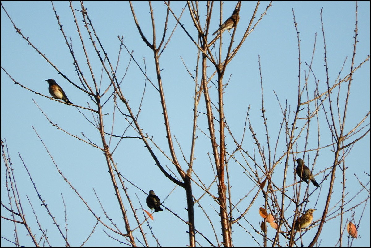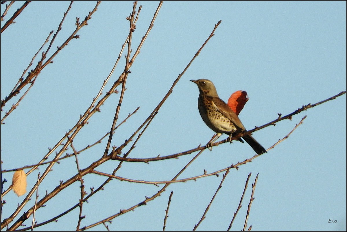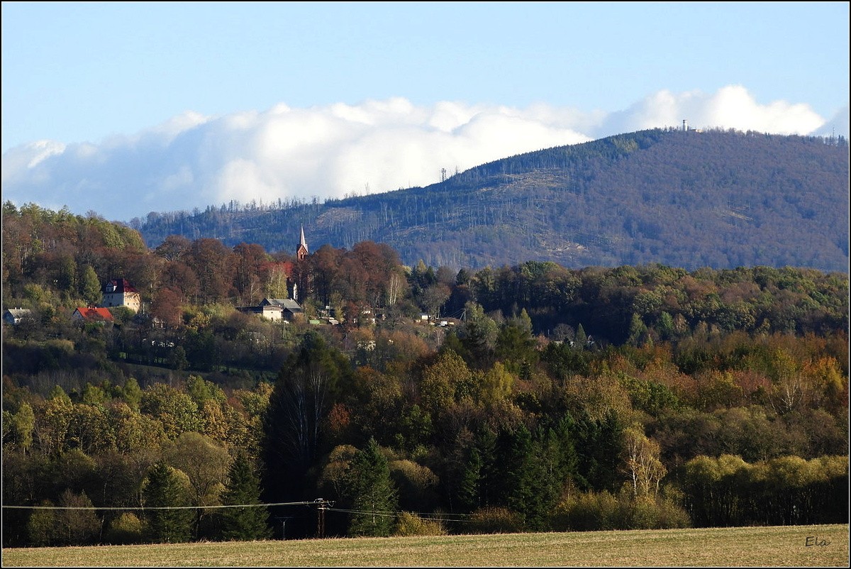 A tak statečně šlapu. Však víš, u nás je to na všechny strany do kopce. Překonám jeden kopec a spustím se z něho dolů do údolí, kde je vesnička Kolnovice. Cesta k ní je lemována červenými jeřabinami. Divím se, že se na nich nepasou žádní ptáci. Louku lemují vysoké stromy a tam vidím přelétávat hejno drozdů. Vyfotit se nechtějí, létají bez rozmyslu sem a tam.