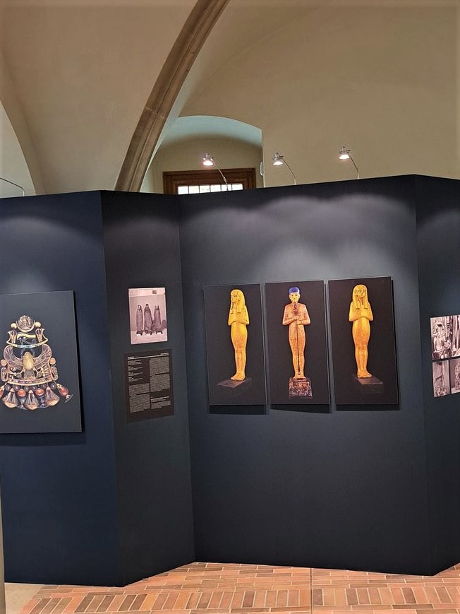 Musím konstatovat, že výstava se moc povedla, i když byla pochopitelně menší než ona zmiňovaná výstava putovní a můžete si ji projít po chodbách Karolina. Líbila se mi a dozvěděla jsem se ještě pár věcí, které jsem nevěděla. Pohlédla jsem do zrekonstruované tváře mladého faraona a seznámila se s posledními objevy, které umožnila moderní věda – jak zemřel, kdo byli jeho rodiče a s jakými zdravotními potížemi se potýkal kvůli zvyku, že se mezi faraony stávali manžely bratři a sestry. Vražedné podnebí Egypta, komáři infikovaní malárií a spousta jiných tehdy neléčitelných nemocí se podepsaly i na životech archeologů– konkrétně i na Champollionovi nebo např.Lordu Carnarvonovi, který financoval Carterův výzkum. Čili evidentně zde nebyla žádná „faraonova kletba“, jak se původně myslelo, ale pouze nevyhovující přírodní podmínky.