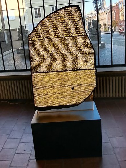 O putovní výstavě o Tutanchamonovi sestávající z úžasně dokonalých kopií, kterou jsem měla možnost kdysi zhlédnout v Brně, jsem zde už psala, a tak jsem byla zvědavá, jak bude vypadat výstava o objevech, které se týkají jednak významného archeologa, skutečného genia, J.F.Champolliona, který svůj tak krátký život zasvětil archeologii a jehož významným objevem bylo vyluštění trojjazyčné tzv. Rosettské desky napsané v již zapomenutých a neužívaných jazycích a dále pak objevu rovněž neméně významnému – hrobce tajemného mladého faraona Tutanchamona (objevitel Howard Carter).