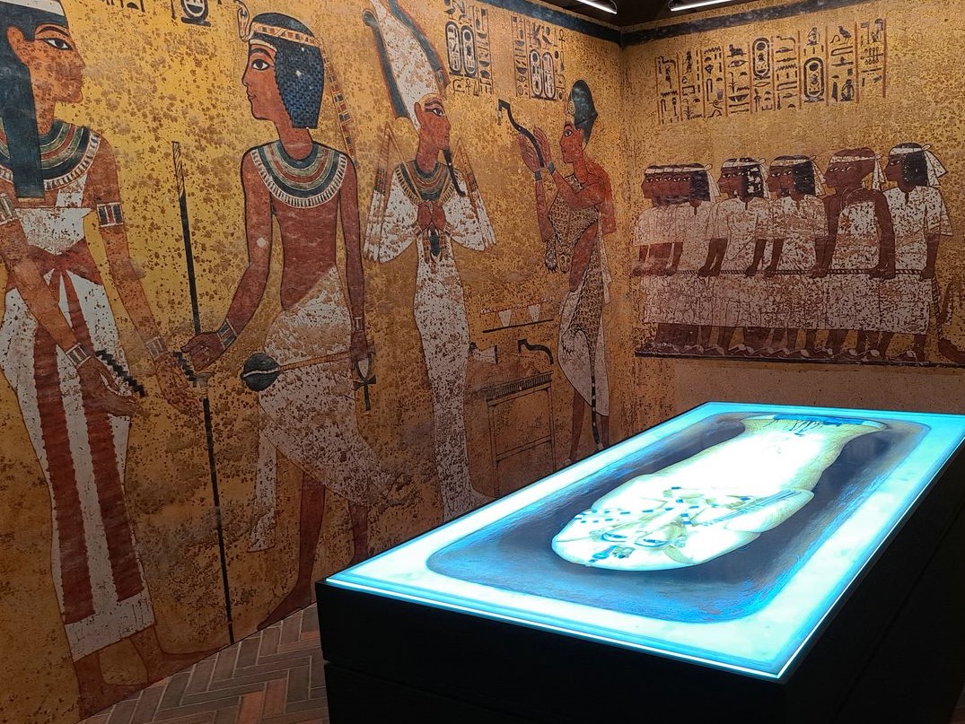 Velice nápadité bylo názorné předvedení, co vlastně poprvé uviděl Howard Carter, když nahlédl proraženou stěnou do Tutanchamonovy hrobky a údajně pronesl: Vidím úžasné věci ! Takže také návštěvník výstavy se může vcítit do jeho pocitů a též nahlédnout malou dírkou ve stěně a spatřit „ty úžasné věci“.