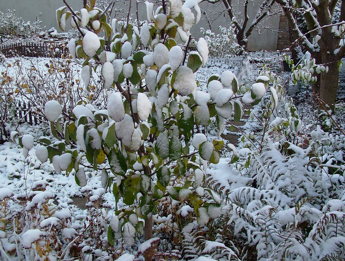 Já už sníh zažila letos po Novém roce. Podívala jsem se tedy dveřmi, máme v nich okénka, ale na zahrádce nic nového. Všude jen mokro po dešti.