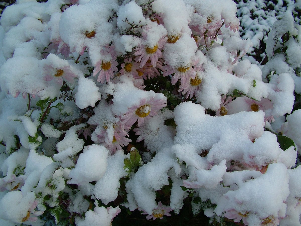 Tak je tady zima a naše zahrádka je zasypaná. Jsou zasypané kytičky i stromky, maliny i růže, bylinky i to divoké víno pro kosy. U obou krmítek je veselo a veselá jsem i já. Panička říká, že ve sněhu skáču jako bleška, ale já se na dlažbě i kloužu, protože tam zmrzl ten déšť. Sníh pořád ochutnávám, olizuji i zasněžená polínka, když si je panička přinese na schody. Je to prima. Občas vyskočím, zhoupnu se na houpačce a sníh mě taky zasype.