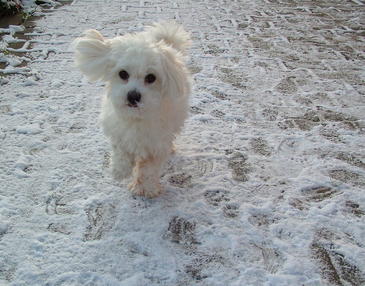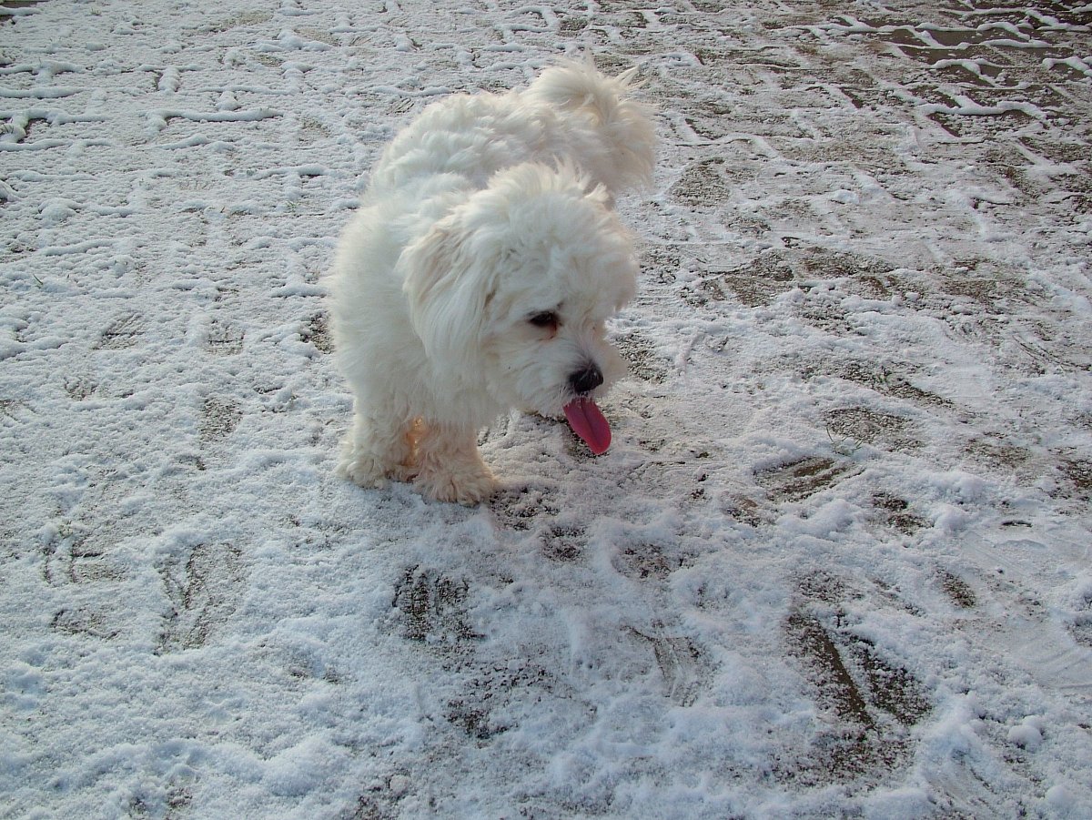 To byla krása, zahrádka byla bílá. Panička šla s námi taky ven a všichni jsme tu bílou zimu přivítali. Naši stáli a koukali s úžasem, jak se snáší k zemi to bílé nadělení. Já se do něho vrhla a běhala jsem kolem nich kolečka, oni už vědí, že tak mám radost největší.