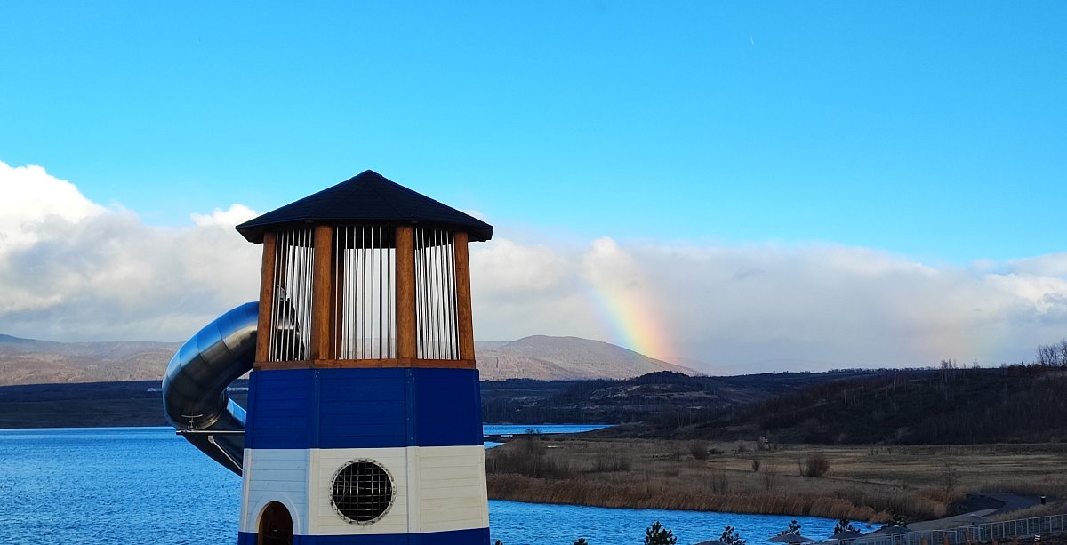 Jen jsme vystoupili z autobusu, bylo vidět na Robinovi, že změna prostředí mu prospěla. A i já jsem se ráda ocitla po Silvestru (kdy to zde bylo "díky" petardám jako ve válce) v zóně klidu. A úsměv na tváři mi vykouzlila duha, která nás ten den doprovázela.