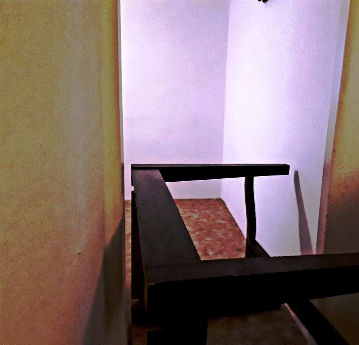 Nakonec jsme se dostali do pokojíčku. Jenže dvě nohy byly tam a dvě venku a ať jsme to natáčeli, otáčeli, stavěli či pokládali, prostě to nešlo. Bylo tam zkrátka málo místa.